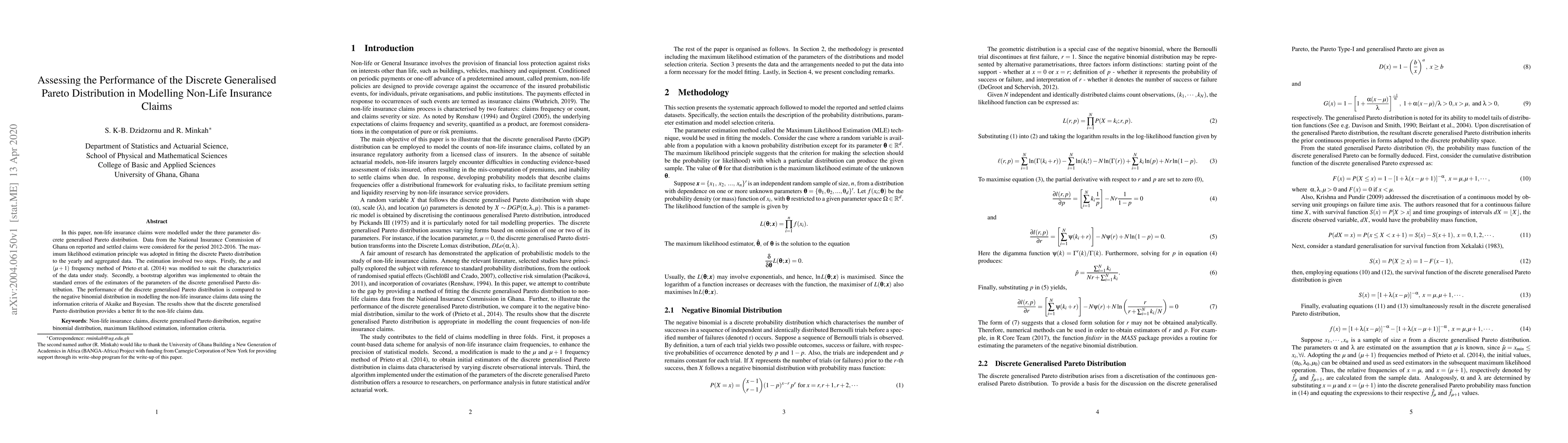 A study assesses the performance of the discrete generalised Pareto distribution in modelling non-life insurance claims, finding it provides a better fit than the negative binomial distribution according to information criteria.