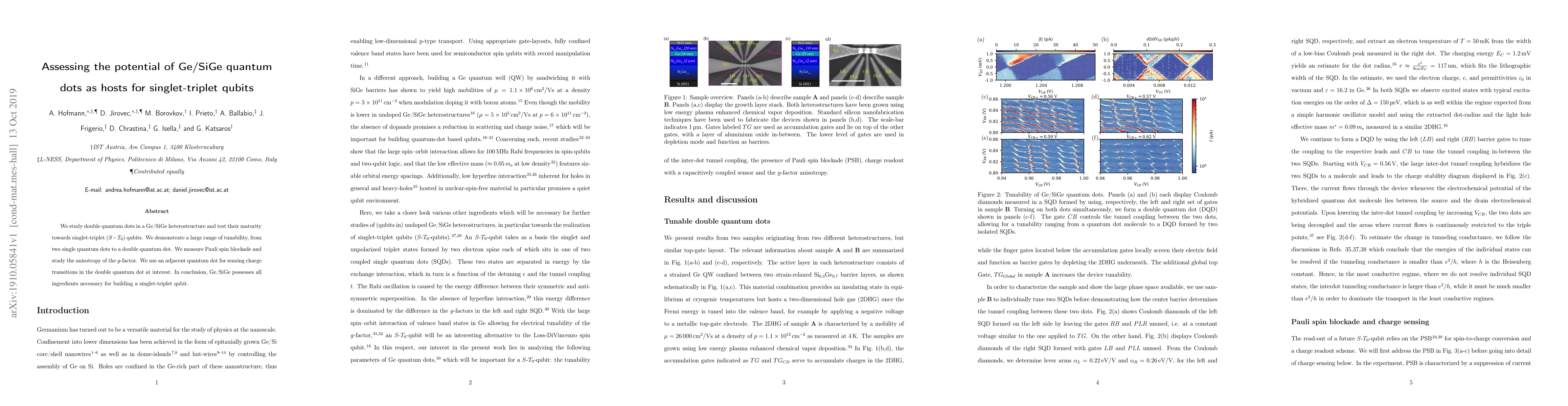 This research explores the feasibility of Ge/SiGe quantum dots in hosting singlet-triplet qubits, demonstrating significant tunability and observing Pauli spin blockade. The study concludes that Ge/SiGe heterostructures are suitable for constructing singlet-triplet qubits.