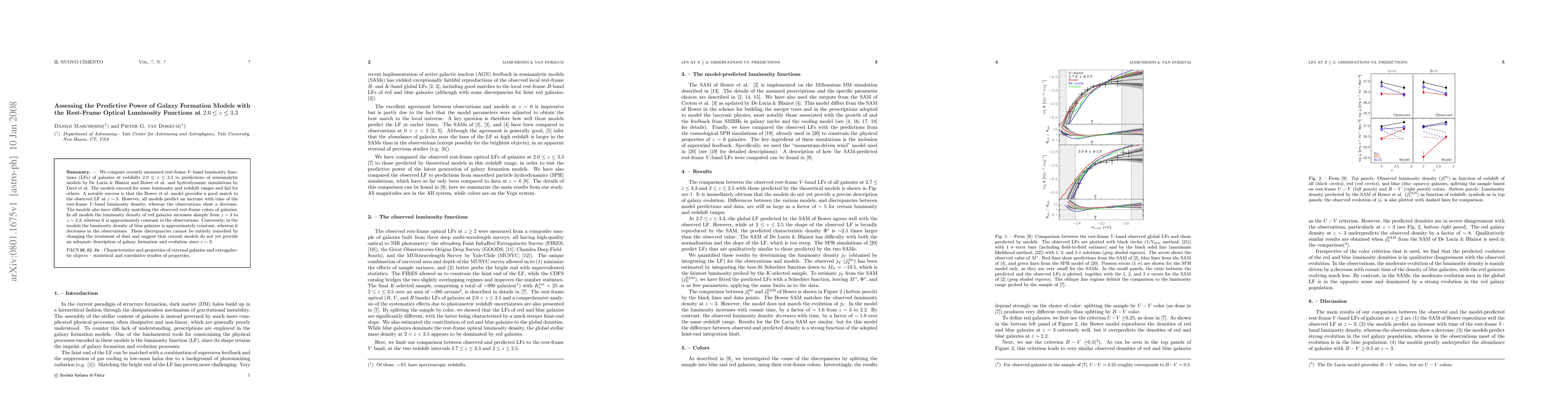 We compare recently measured rest-frame V-band luminosity functions (LFs) of galaxies at redshifts 2.0