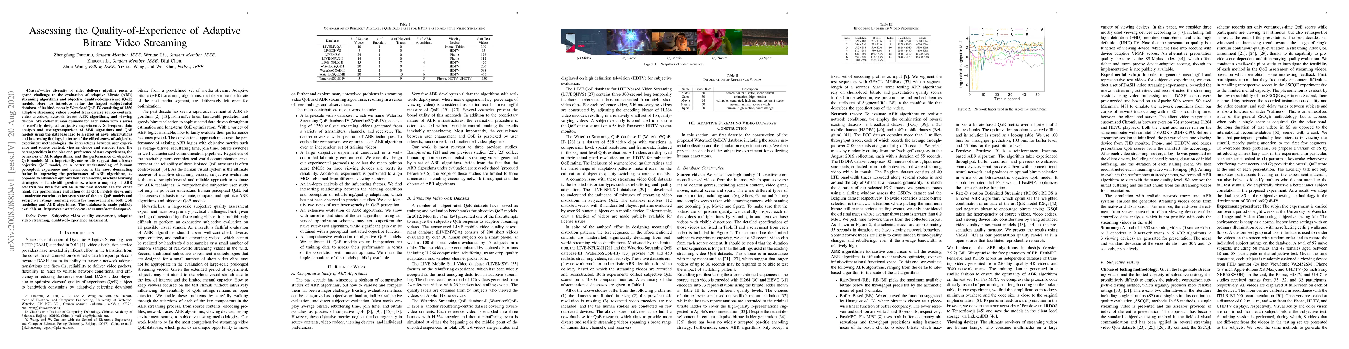 This paper evaluates the quality-of-experience (QoE) of adaptive bitrate video streaming using a large database of 1350 videos. The study reveals that understanding human perceptual experience and behavior is crucial for improving ABR algorithms, rather than relying on advanced optimization or machine learning strategies. The research also highlights the moderate correlation between existing QoE models and subjective ratings, indicating potential for further improvements.
