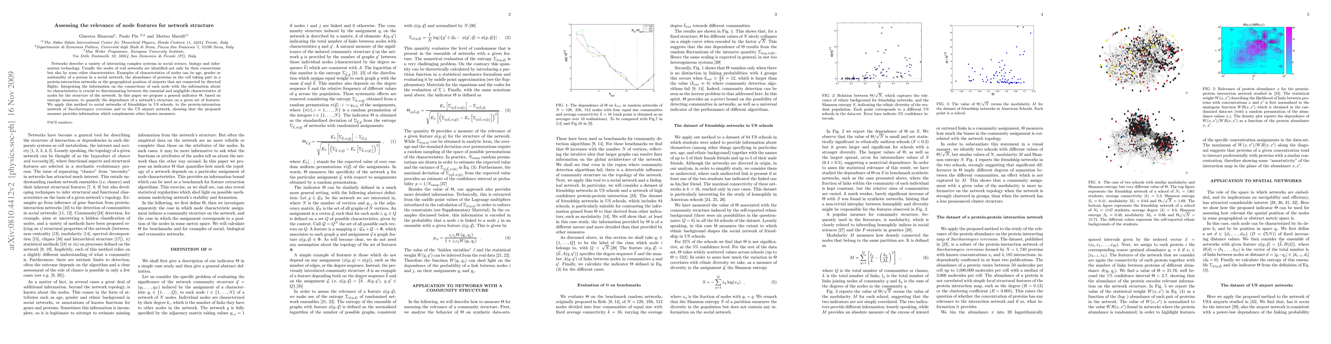 Networks describe a variety of interacting complex systems in social science, biology and information technology. Usually the nodes of real networks are identified not only by their connections but also by some other characteristics. Examples of characteristics of nodes can be age, gender or nationality of a person in a social network, the abundance of proteins in the cell taking part in a protein-interaction networks or the geographical position of airports that are connected by directed flights. Integrating the information on the connections of each node with the information about its characteristics is crucial to discriminating between the essential and negligible characteristics of nodes for the structure of the network. In this paper we propose a general indicator, based on entropy measures, to quantify the dependence of a network's structure on a given set of features. We apply this method to social networks of friendships in US schools, to the protein-interaction network of Saccharomyces cerevisiae and to the US airport network, showing that the proposed measure provides information which complements other known measures.