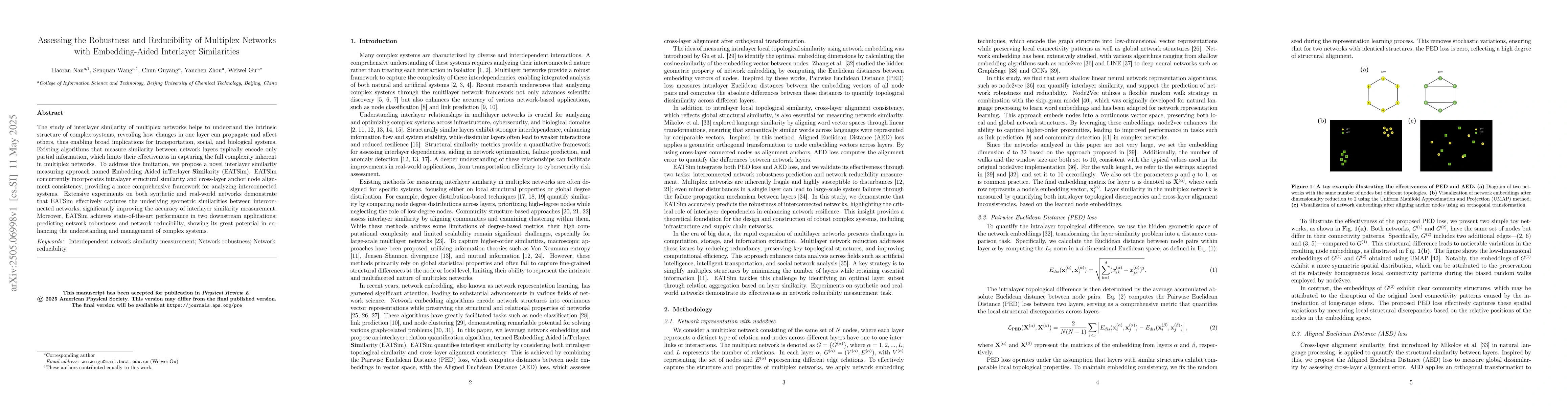 The research proposes a novel interlayer similarity measuring approach called Embedding Aided inTerlayer Similarity (EATSim), which integrates intralayer structural similarity and cross-layer anchor node alignment consistency for comprehensive multiplex network analysis.