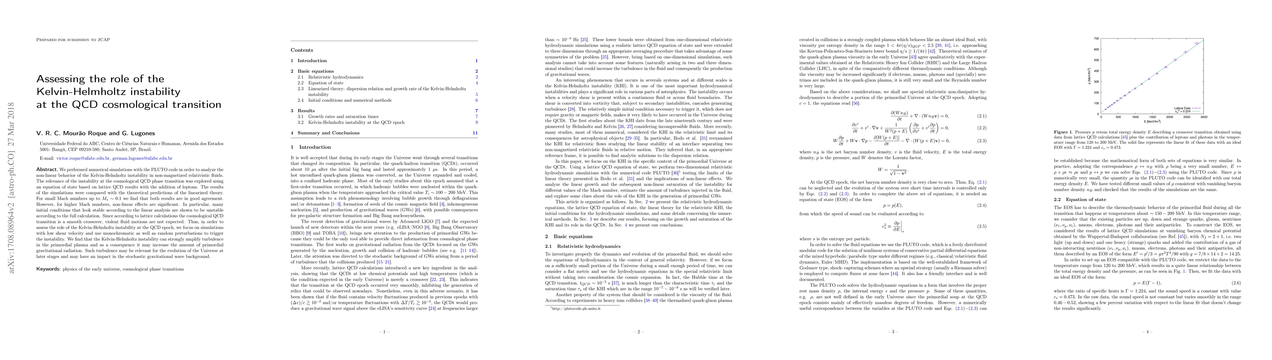 This paper investigates the Kelvin-Helmholtz instability in non-linear relativistic fluids during the cosmological QCD phase transition using numerical simulations. It finds that while the instability is significant at higher Mach numbers, it can amplify turbulence in the primordial plasma, potentially affecting the stochastic gravitational wave background.
