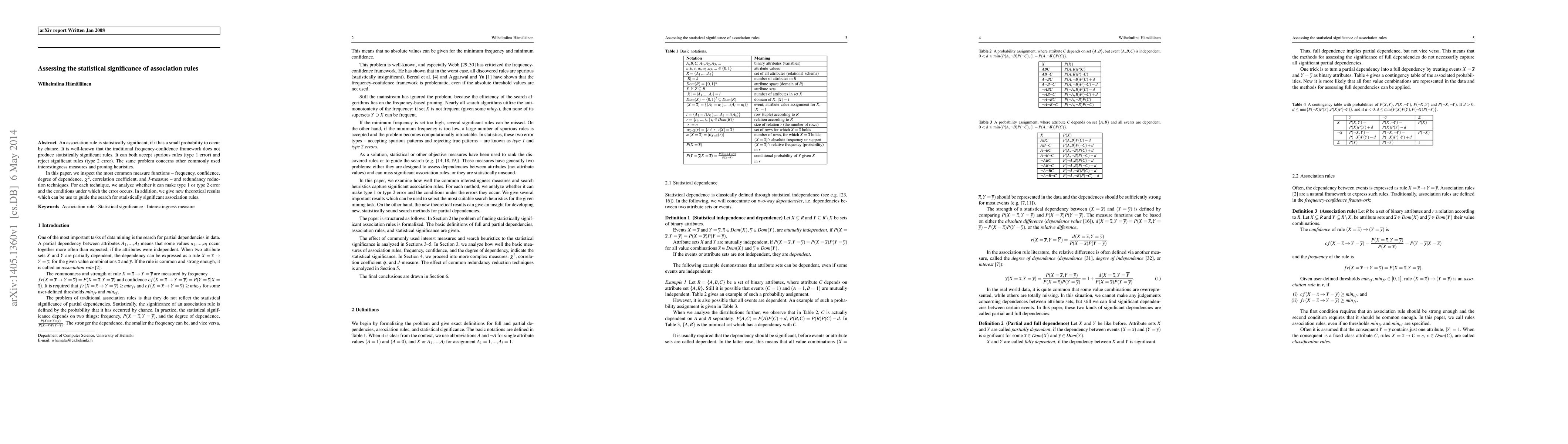 This paper examines the statistical significance of association rules, identifying flaws in traditional measures like frequency and confidence that can lead to type 1 and type 2 errors. It provides new theoretical insights to guide the discovery of genuinely significant association rules.