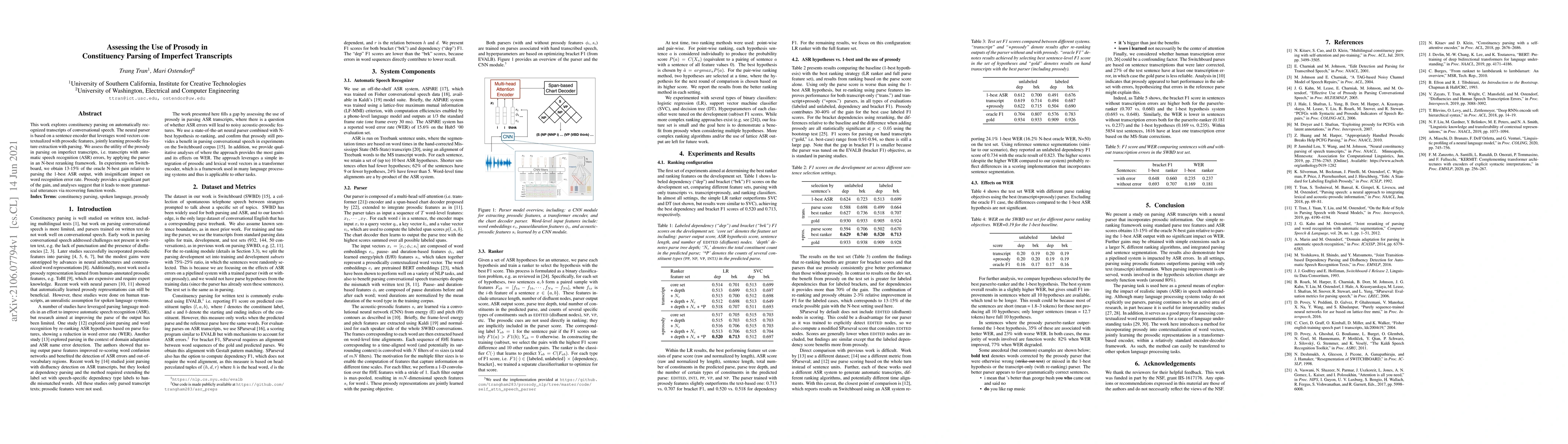 This work explores constituency parsing on automatically recognized transcripts of conversational speech. The neural parser is based on a sentence encoder that leverages word vectors contextualized with prosodic features, jointly learning prosodic feature extraction with parsing. We assess the utility of the prosody in parsing on imperfect transcripts, i.e. transcripts with automatic speech recognition (ASR) errors, by applying the parser in an N-best reranking framework. In experiments on Switchboard, we obtain 13-15% of the oracle N-best gain relative to parsing the 1-best ASR output, with insignificant impact on word recognition error rate. Prosody provides a significant part of the gain, and analyses suggest that it leads to more grammatical utterances via recovering function words.