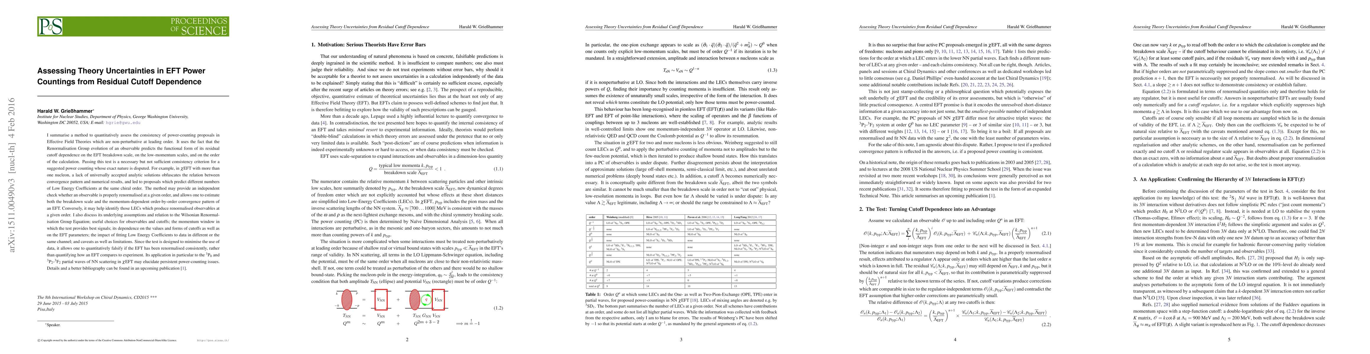 I summarise a method to quantitatively assess the consistency of power-counting proposals in Effective Field Theories which are non-perturbative at leading order. It uses the fact that the Renormalisation Group evolution of an observable predicts the functional form of its residual cutoff dependence on the EFT breakdown scale, low-momentum scales, and the order of the calculation. Passing this test is a necessary but not sufficient consistency criterion for a suggested power counting whose exact nature is disputed. For example, in ChiEFT with more than one nucleon, a lack of universally accepted analytic solutions obfuscates the relation between convergence pattern and numerical results, and led to proposals which predict different numbers of Low Energy Coefficients at the same chiral order. The method may provide an independent check whether an observable is renormalised at a given order, and of both the breakdown scale and the momentum-dependent order-by-order convergence pattern of an EFT. Conversely, it may help identify LECs which produce renormalised observables at a given order. I also discuss its underlying assumptions and relation to the RG Equation; useful choices for observables and cutoffs; the momentum window in which the test provides best signals; its dependence on the values and forms of cutoffs as well as on the EFT parameters; the impact of fitting Low Energy Coefficients to data in different or the same channel; caveats and limitations. Since the test is designed to minimise the use of data, it allows one to quantitatively falsify if the EFT has been renormalised consistently, rather than quantifying how an EFT compares to experiment. Its application in particular to the 3P0 and 3P2-3F2 partial waves of NN scattering in ChiEFT may elucidate persistent power-counting issues. Details and a better bibliography can be found in an upcoming publication.
