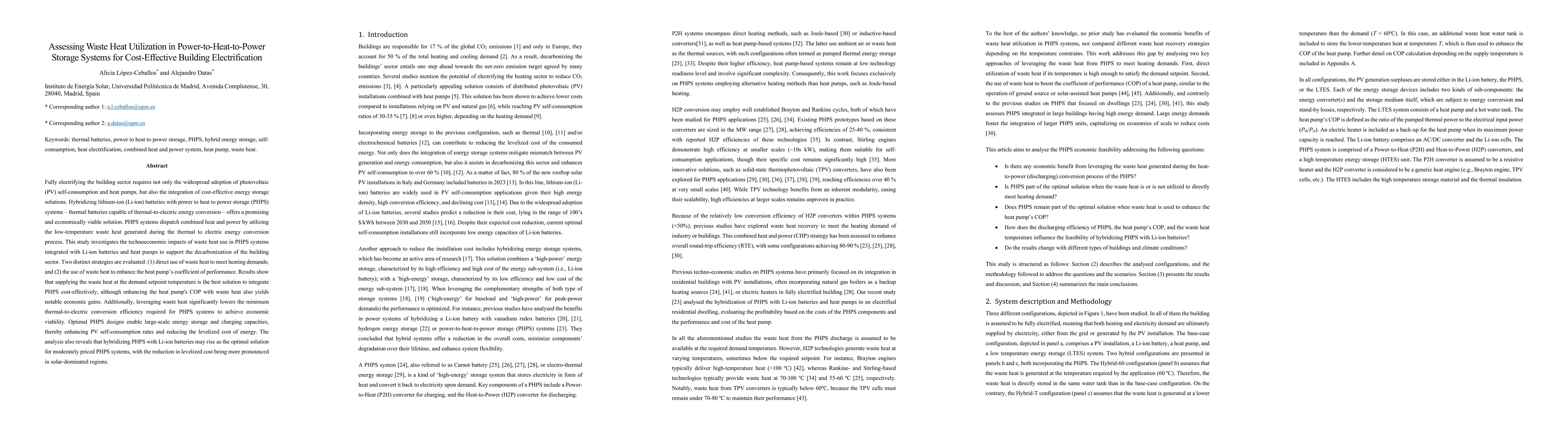 Fully electrifying the building sector requires not only the widespread adoption of photovoltaic (PV) self-consumption and heat pumps, but also the integration of cost-effective energy storage solutions. Hybridizing lithium-ion (Li-ion) batteries with power to heat to power storage (PHPS) systems, thermal batteries capable of thermal-to-electric energy conversion, offers a promising and economically viable solution. PHPS systems dispatch combined heat and power by utilizing the low-temperature waste heat generated during the thermal to electric energy conversion process. This study investigates the technoeconomic impacts of waste heat use in PHPS systems integrated with Li-ion batteries and heat pumps to support the decarbonization of the building sector. Two distinct strategies are evaluated: direct use of waste heat to meet heating demands; and the use of waste heat to enhance the heat pump's coefficient of performance. Results show that supplying the waste heat at the demand setpoint temperature is the best solution to integrate PHPS cost-effectively, although enhancing the heat pump's COP with waste heat also yields notable economic gains. Additionally, leveraging waste heat significantly lowers the minimum thermal-to-electric conversion efficiency required for PHPS systems to achieve economic viability. Optimal PHPS designs enable large-scale energy storage and charging capacities, thereby enhancing PV self-consumption rates and reducing the levelized cost of energy. The analysis also reveals that hybridizing PHPS with Li-ion batteries may rise as the optimal solution for moderately priced PHPS systems, with the reduction in levelized cost being more pronounced in solar-dominated regions.