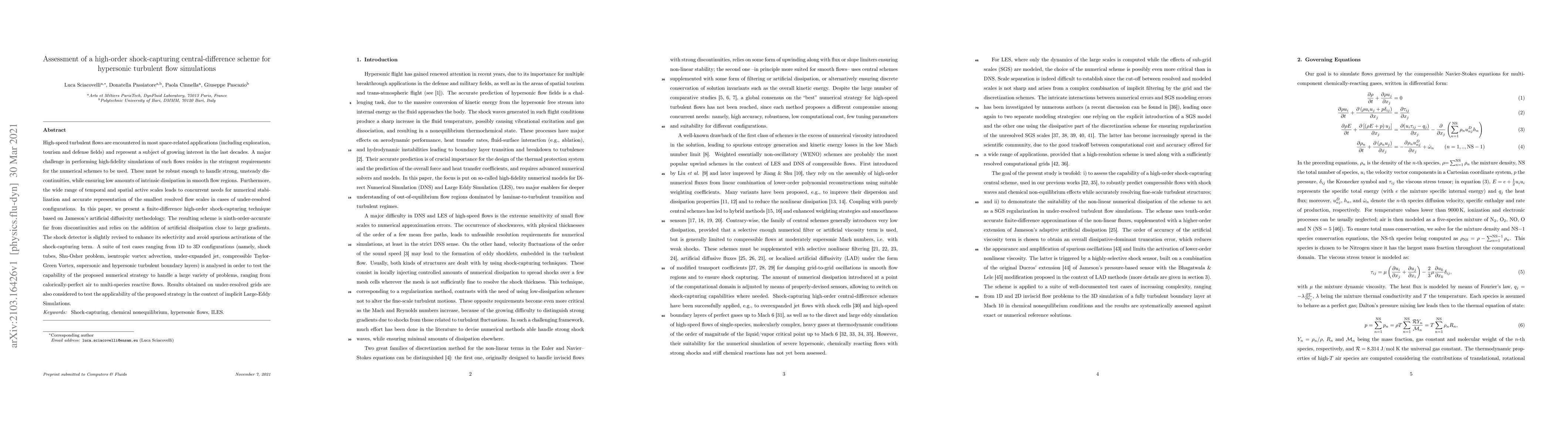 This paper introduces a ninth-order accurate, high-order shock-capturing central-difference scheme for simulating hypersonic turbulent flows. The method, based on Jameson's artificial diffusivity, is tested across various 1D-3D configurations, demonstrating robustness in handling strong discontinuities and low dissipation in smooth regions. It's also evaluated on under-resolved grids for implicit Large-Eddy Simulations.