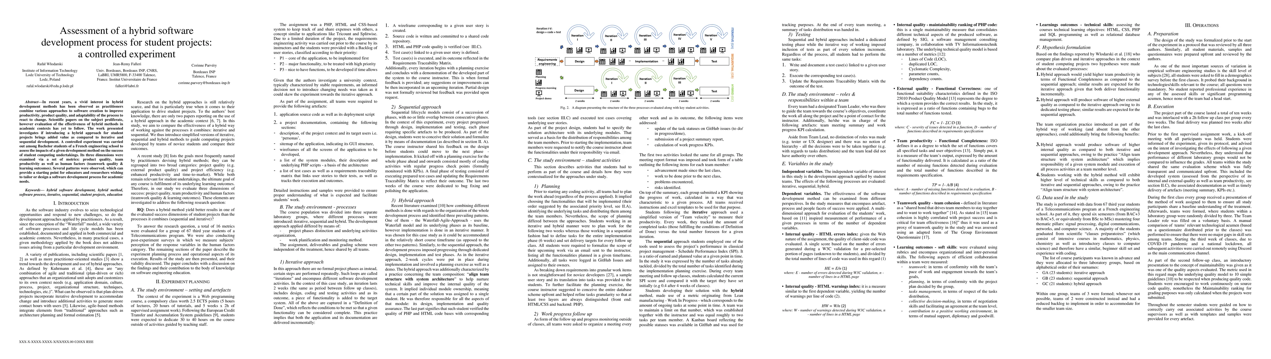 This study explores the effectiveness of hybrid software development methods in academic settings through a controlled experiment with Bachelor students. The results indicate potential benefits in product quality, team productivity, teamwork, and learning outcomes compared to traditional iterative and sequential methods.