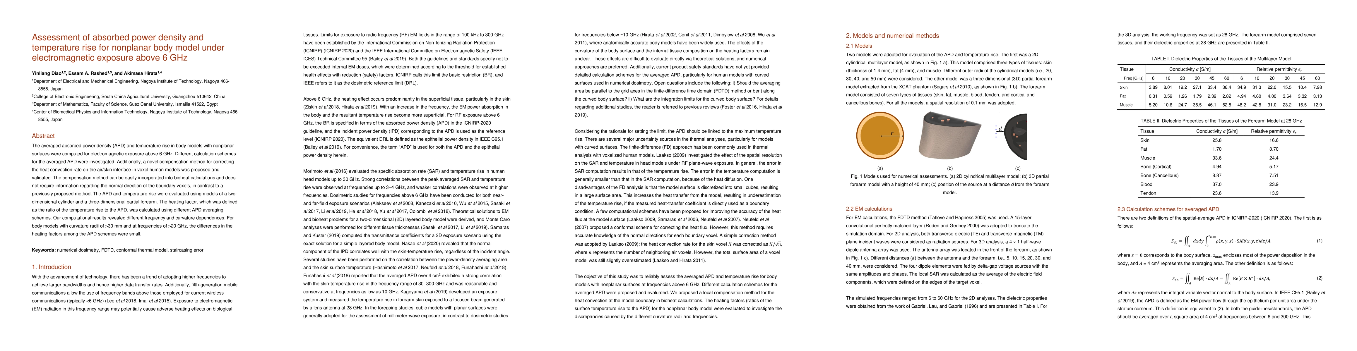 This research paper investigates electromagnetic exposure effects on nonplanar body models at frequencies above 6 GHz, finding frequency and curvature dependence in absorbed power density and temperature rise.