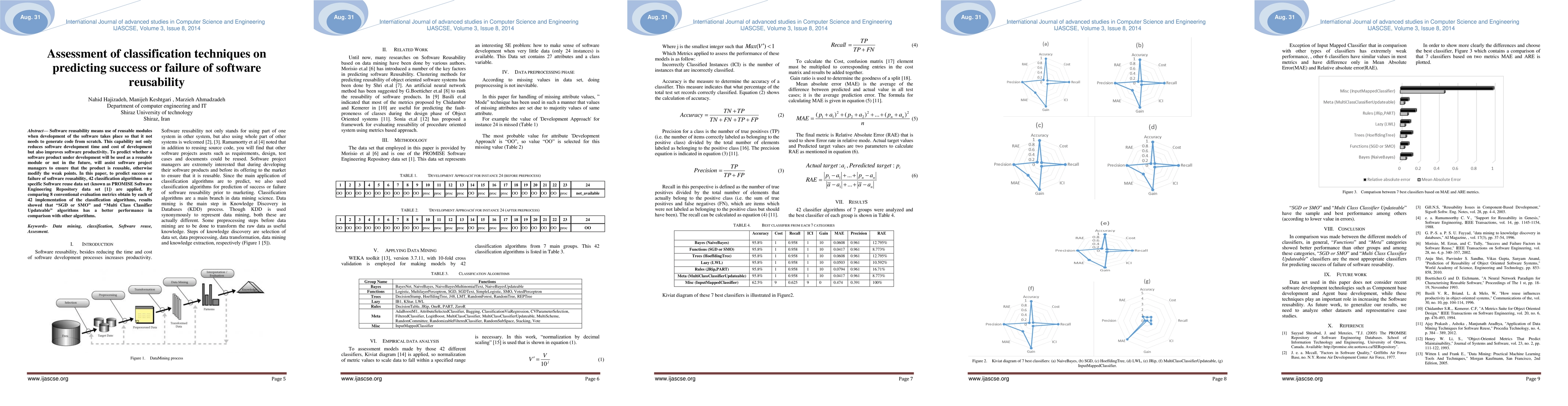 This paper evaluates various classification techniques to predict the success or failure of software reusability, aiming to identify the most effective method for enhancing software reuse strategies. The results provide insights into how machine learning models can optimize the assessment of software components for reuse.