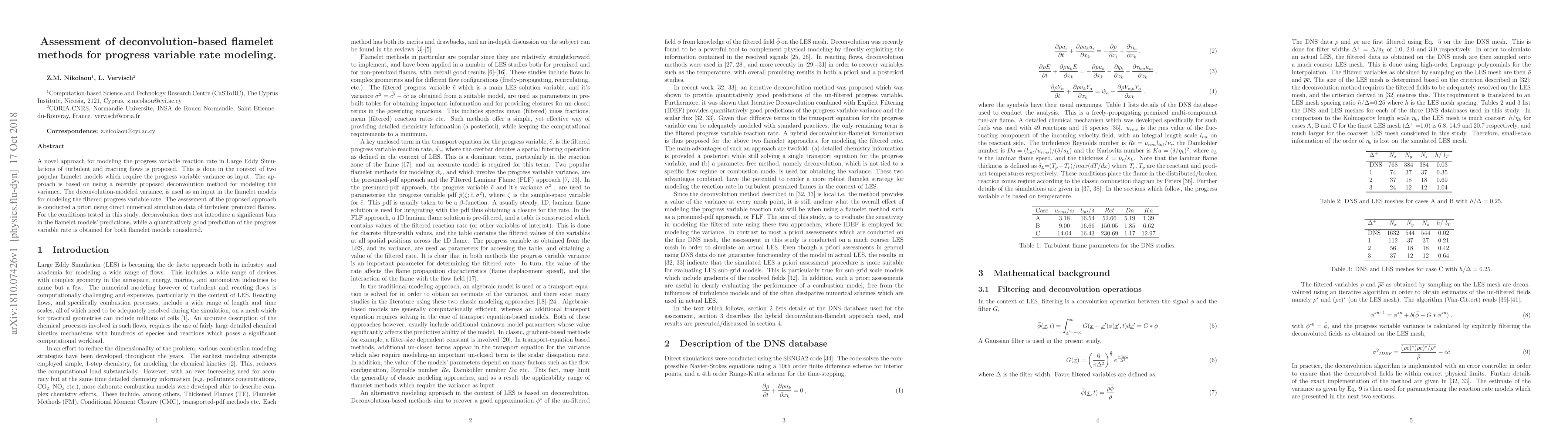This paper proposes a novel deconvolution-based method to model the progress variable reaction rate in Large Eddy Simulations of turbulent and reacting flows. The method uses deconvolution to estimate the progress variable variance, which is then input into flamelet models, yielding accurate predictions without significant bias.