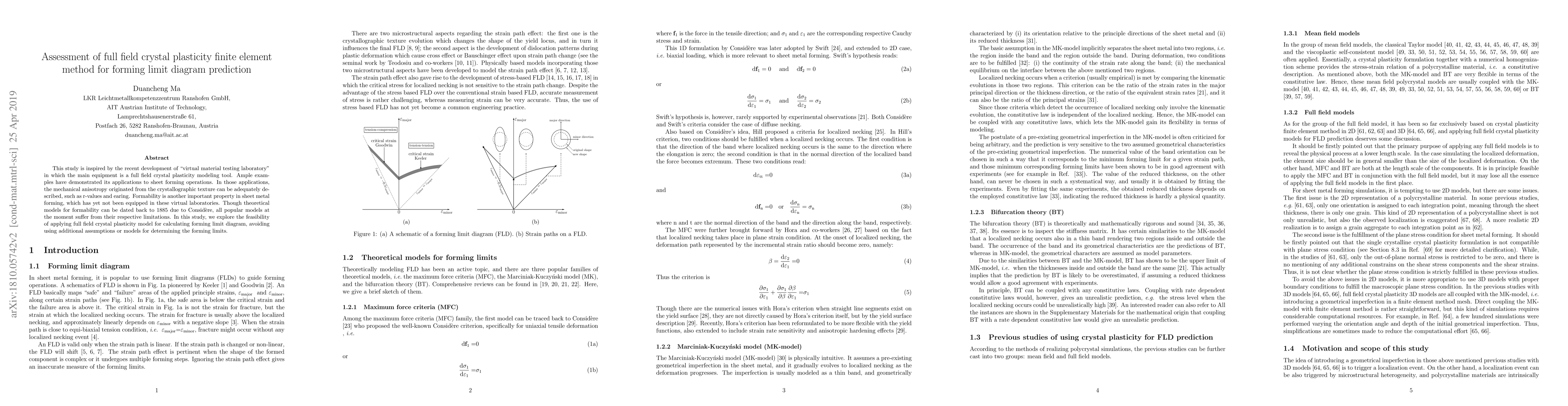 This study is inspired by the recent development of "virtual material testing laboratory" in which the main equipment is a full field crystal plasticity modeling tool. Ample examples have demonstrated its applications to sheet forming operations. In those applications, the mechanical anisotropy originated from the crystallographic texture can be adequately described, such as r-values and earing. Formability is another important property in sheet metal forming, which has yet not been equipped in these virtual laboratories. Though theoretical models for formability can be dated back to 1885 due to Consid\`{e}re, all popular models at the moment suffer from their respective limitations. In this study, we explore the feasibility of applying full field crystal plasticity model for calculating forming limit diagram, avoiding using additional assumptions or models for determining the forming limits.