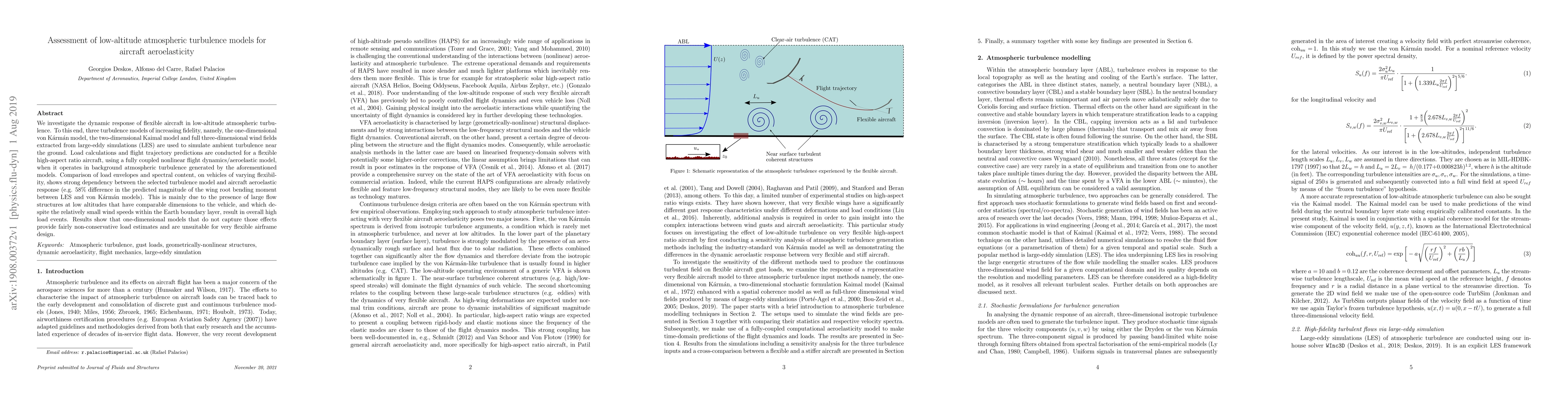 This study evaluates the impact of different low-altitude atmospheric turbulence models on the aeroelastic response of flexible aircraft. Results indicate significant differences in load predictions, with three-dimensional models providing more accurate assessments than one-dimensional models, especially for highly flexible aircraft.
