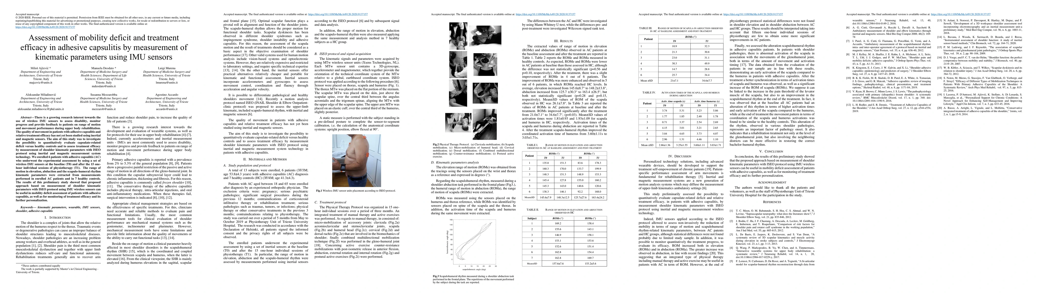 Researchers assessed mobility deficit in adhesive capsulitis using IMU sensors, finding a method for quantifying movement and treatment efficacy. The study showed promise for personalized physiotherapy using wearable technology.