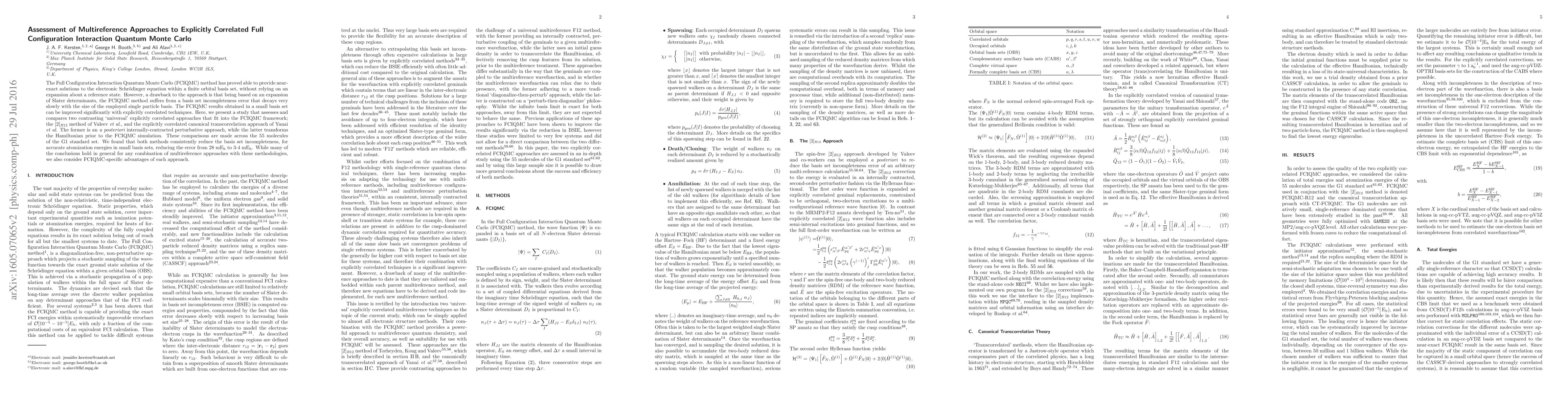 The Full Configuration Interaction Quantum Monte Carlo (FCIQMC) method has proved able to provide near-exact solutions to the electronic Schr\"odinger equation within a finite orbital basis set, without relying on an expansion about a reference state. However, a drawback to the approach is that being based on an expansion of Slater determinants, the FCIQMC method suffers from a basis set incompleteness error that decays very slowly with the size of the employed single particle basis. The FCIQMC results obtained in a small basis set can be improved significantly with explicitly correlated techniques. Here, we present a study that assesses and compares two contrasting `universal' explicitly correlated approaches that fit into the FCIQMC framework; the $[2]_{R12}$ method of Valeev {\em et al.}, and the explicitly correlated canonical transcorrelation approach of Yanai {\em et al}. The former is an {\em a posteriori} internally-contracted perturbative approach, while the latter transforms the Hamiltonian prior to the FCIQMC simulation. These comparisons are made across the 55 molecules of the G1 standard set. We found that both methods consistently reduce the basis set incompleteness, for accurate atomization energies in small basis sets, reducing the error from 28~mE$_{\text h}$ to 3-4~mE$_{\text h}$. While many of the conclusions hold in general for any combination of multireference approaches with these methodologies, we also consider FCIQMC-specific advantages of each approach.