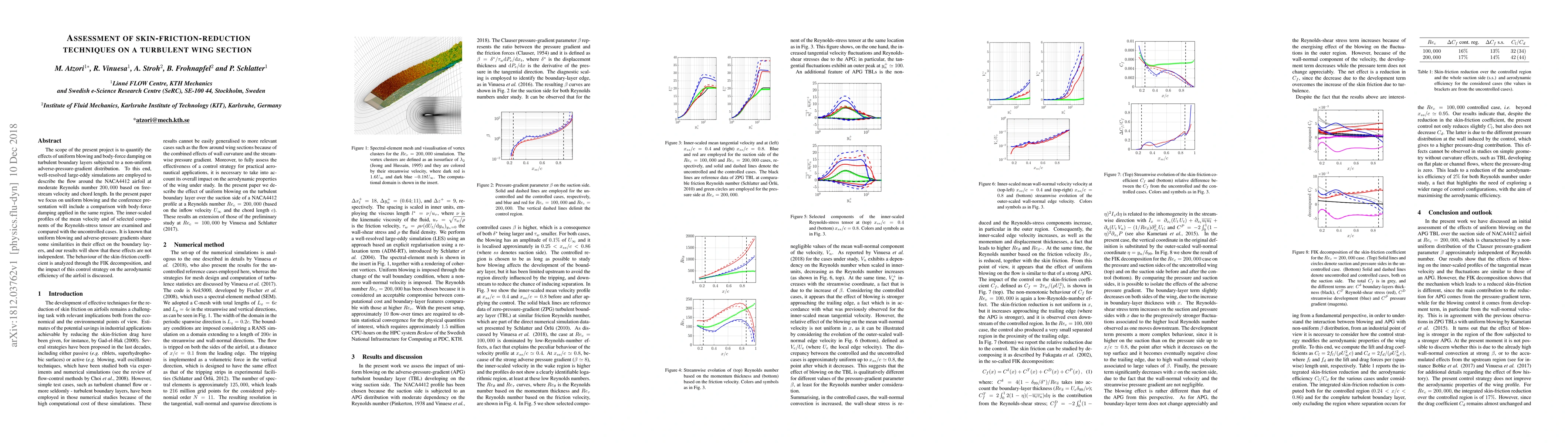 The scope of the present project is to quantify the effects of uniform blowing and body-force damping on turbulent boundary layers subjected to a non-uniform adverse-pressure-gradient distribution. To this end, well-resolved large-eddy simulations are employed to describe the flow around the NACA4412 airfoil at moderate Reynolds number 200, 000 based on freestream velocity and chord length. In the present paper we focus on uniform blowing and the conference presentation will include a comparison with body-force damping applied in the same region. The inner-scaled profiles of the mean velocity and of selected components of the Reynolds-stress tensor are examined and compared with the uncontrolled cases. It is known that uniform blowing and adverse-pressure gradients share some similarities in their effect on the boundary layers, and our results will show that these effects are not independent. The behaviour of the skin-friction coefficient is analyzed through the FIK decomposition, and the impact of this control strategy on the aerodynamic efficiency of the airfoil is discussed.