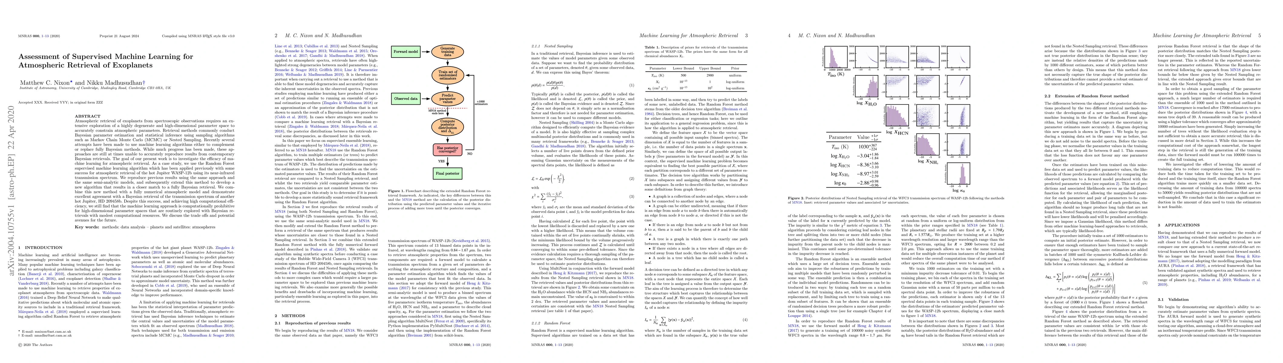 This paper explores the use of supervised machine learning, specifically Random Forest algorithms, for atmospheric retrieval of exoplanets, demonstrating improved efficiency compared to traditional Bayesian methods. Despite achieving good results with a new hybrid approach, the machine learning method remains computationally challenging for high-dimensional parameter spaces.