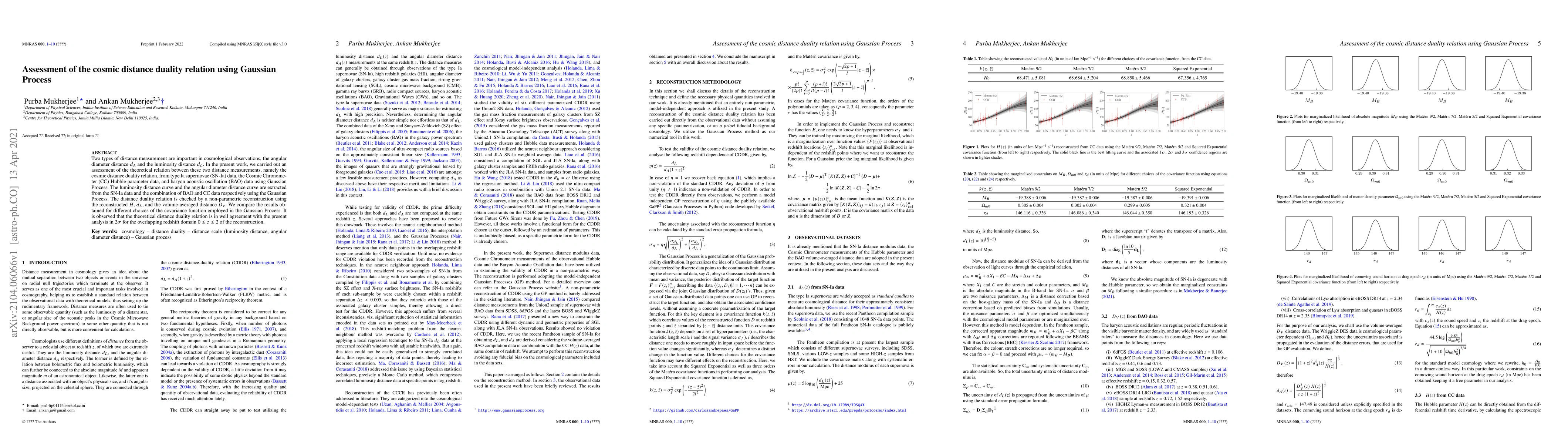 This paper assesses the cosmic distance duality relation using Gaussian Process, comparing angular diameter and luminosity distances from SN-Ia, CC, and BAO data. The analysis shows good agreement with the theoretical relation within the redshift range $0 \leq z \leq 2$.