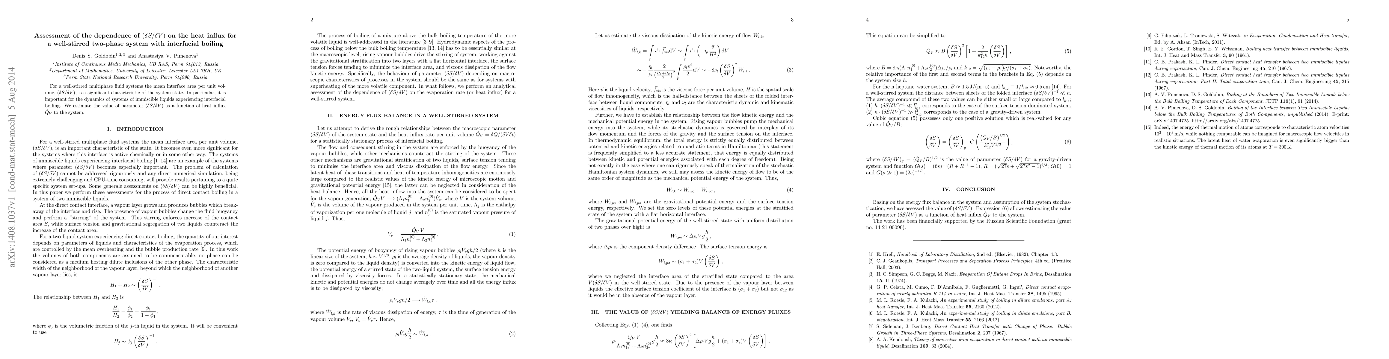 For a well-stirred multiphase fluid systems the mean interface area per unit volume, $(\delta{S}/\delta{V})$, is a significant characteristic of the system state. In particular, it is important for the dynamics of systems of immiscible liquids experiencing interfacial boiling. We estimate the value of parameter $(\delta{S}/\delta{V})$ as a function of heat influx $\dot{Q}_V$ to the system.