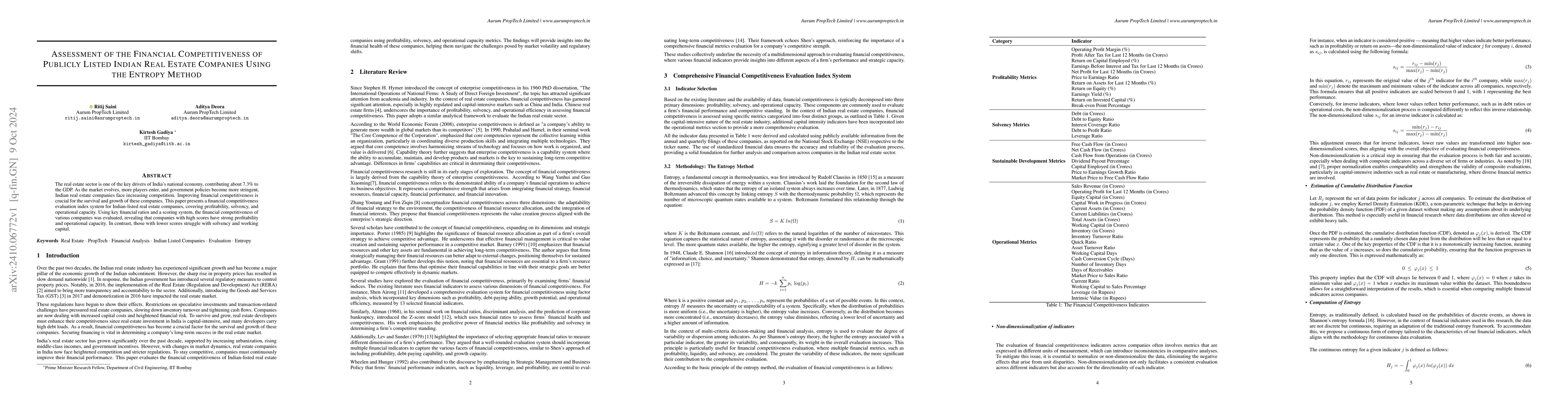 This paper evaluates the financial competitiveness of publicly listed Indian real estate companies using the entropy method, focusing on profitability, solvency, and operational capacity. Results show that companies with high competitiveness scores exhibit strong profitability and operational capacity, while those with lower scores face solvency and working capital challenges.