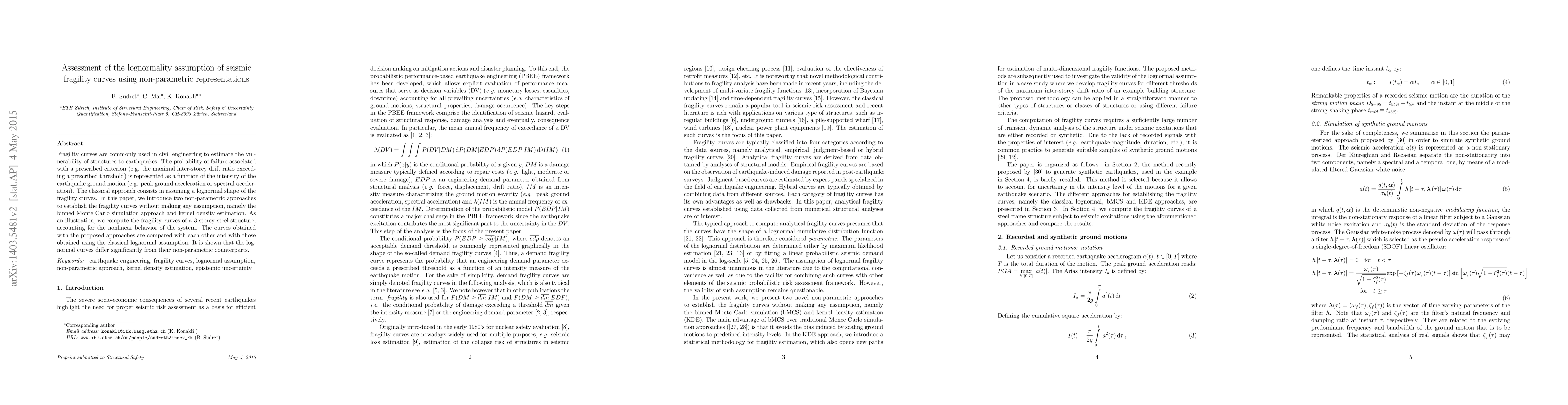 This paper evaluates the lognormality assumption in seismic fragility curves using non-parametric methods. It introduces conditional Monte Carlo simulation and kernel density estimation to derive fragility curves without assuming lognormality, and compares these with traditional lognormal curves for a 3-storey steel structure.