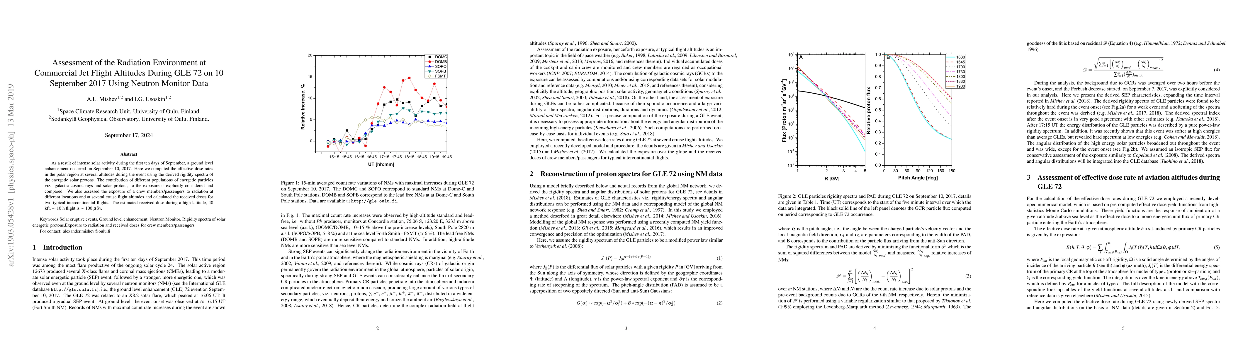 This study assesses the radiation environment at commercial jet altitudes during the GLE 72 on September 10, 2017, using neutron monitor data. It evaluates the effective dose rates from galactic cosmic rays and solar protons, estimating a received dose of approximately 100 µSv for a high-latitude, 40,000 ft flight lasting around 10 hours.