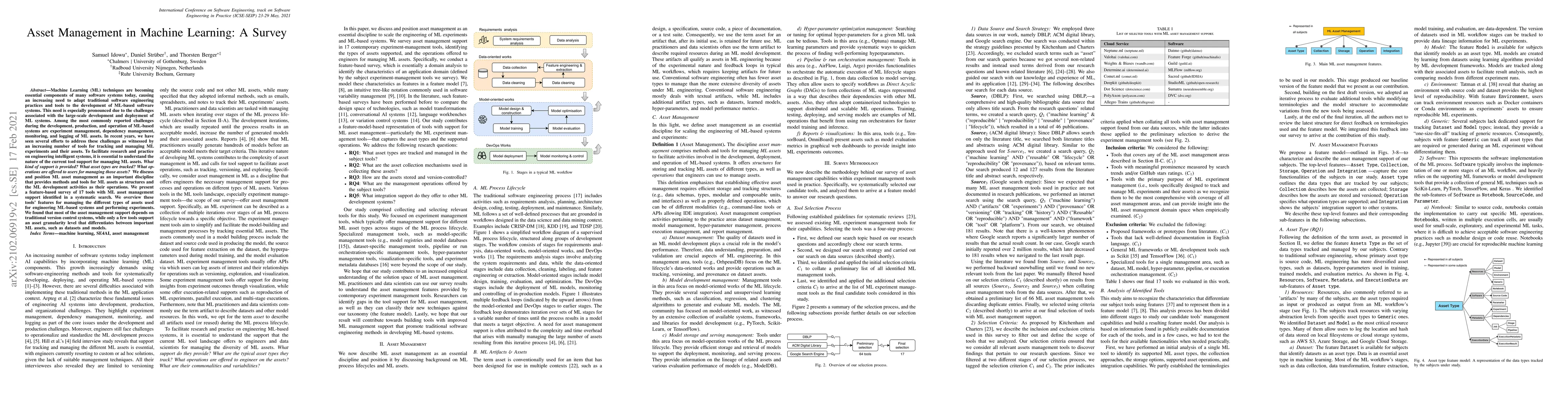 This paper surveys tools for managing assets in machine learning (ML) systems, highlighting the challenges of experiment, dependency, and asset management. It reviews 17 tools, noting that most rely on traditional version control, while few offer specialized support for key ML assets like datasets and models.