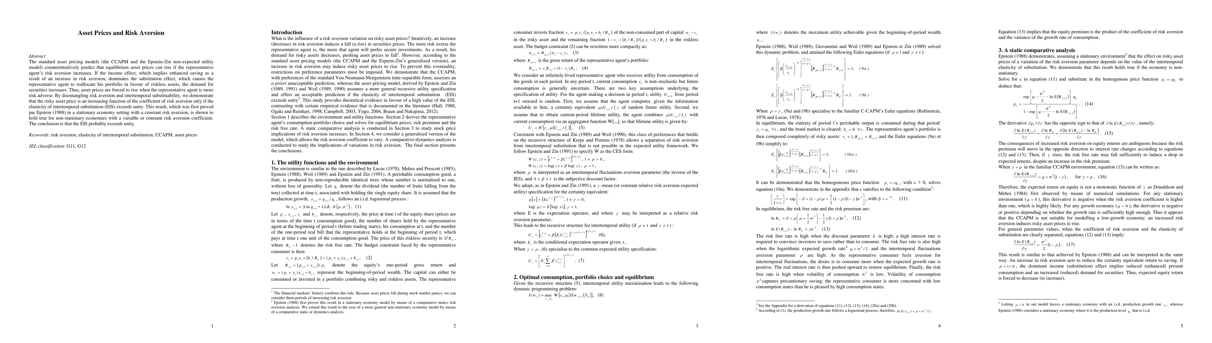 The standard asset pricing models (the CCAPM and the Epstein-Zin non-expected utility model) counterintuitively predict that equilibrium asset prices can rise if the representative agent's risk aversion increases. If the income effect, which implies enhanced saving as a result of an increase in risk aversion, dominates the substitution effect, which causes the representative agent to reallocate his portfolio in favour of riskless assets, the demand for securities increases. Thus, asset prices are forced to rise when the representative agent is more risk adverse. By disentangling risk aversion and intertemporal substituability, we demonstrate that the risky asset price is an increasing function of the coefficient of risk aversion only if the elasticity of intertemporal substitution (EIS) exceeds unity. This result, which was first proved par Epstein (1988) in a stationary economy setting with a constant risk aversion, is shown to hold true for non-stationary economies with a variable or constant risk aversion coefficient. The conclusion is that the EIS probably exceeds unity.