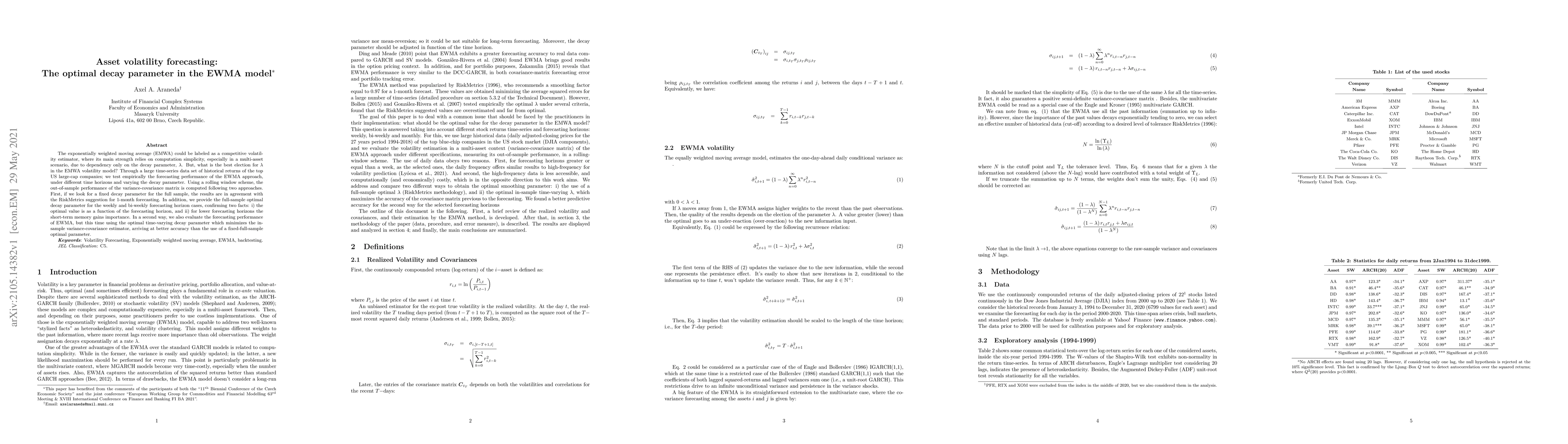 The exponentially weighted moving average (EMWA) could be labeled as a competitive volatility estimator, where its main strength relies on computation simplicity, especially in a multi-asset scenario, due to dependency only on the decay parameter, $\lambda$. But, what is the best election for $\lambda$ in the EMWA volatility model? Through a large time-series data set of historical returns of the top US large-cap companies; we test empirically the forecasting performance of the EWMA approach, under different time horizons and varying the decay parameter. Using a rolling window scheme, the out-of-sample performance of the variance-covariance matrix is computed following two approaches. First, if we look for a fixed decay parameter for the full sample, the results are in agreement with the RiskMetrics suggestion for 1-month forecasting. In addition, we provide the full-sample optimal decay parameter for the weekly and bi-weekly forecasting horizon cases, confirming two facts: i) the optimal value is as a function of the forecasting horizon, and ii) for lower forecasting horizons the short-term memory gains importance. In a second way, we also evaluate the forecasting performance of EWMA, but this time using the optimal time-varying decay parameter which minimizes the in-sample variance-covariance estimator, arriving at better accuracy than the use of a fixed-full-sample optimal parameter.