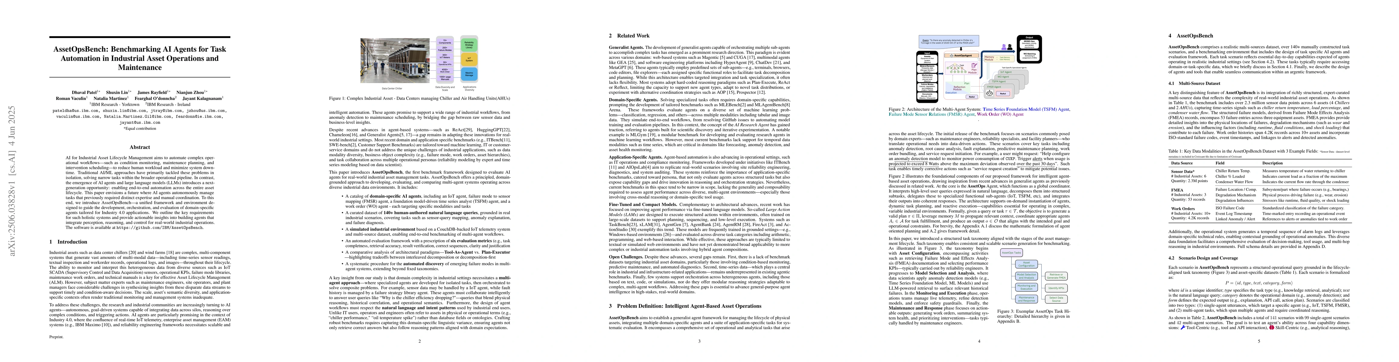 This paper introduces AssetOpsBench, a unified framework for developing AI agents that automate industrial asset operations and maintenance tasks. It provides actionable insights for building holistic systems with integrated perception, reasoning, and control.