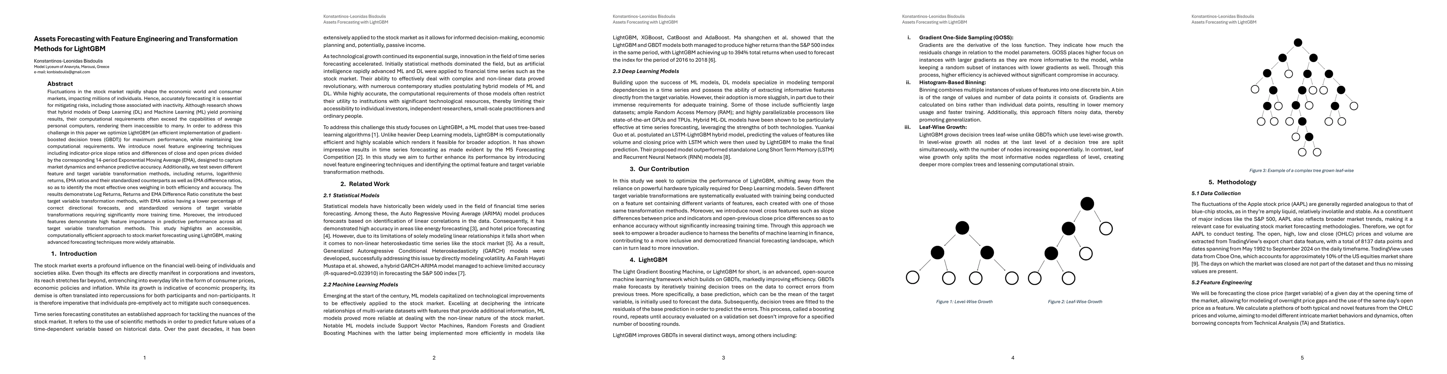 Fluctuations in the stock market rapidly shape the economic world and consumer markets, impacting millions of individuals. Hence, accurately forecasting it is essential for mitigating risks, including those associated with inactivity. Although research shows that hybrid models of Deep Learning (DL) and Machine Learning (ML) yield promising results, their computational requirements often exceed the capabilities of average personal computers, rendering them inaccessible to many. In order to address this challenge in this paper we optimize LightGBM (an efficient implementation of gradient-boosted decision trees (GBDT)) for maximum performance, while maintaining low computational requirements. We introduce novel feature engineering techniques including indicator-price slope ratios and differences of close and open prices divided by the corresponding 14-period Exponential Moving Average (EMA), designed to capture market dynamics and enhance predictive accuracy. Additionally, we test seven different feature and target variable transformation methods, including returns, logarithmic returns, EMA ratios and their standardized counterparts as well as EMA difference ratios, so as to identify the most effective ones weighing in both efficiency and accuracy. The results demonstrate Log Returns, Returns and EMA Difference Ratio constitute the best target variable transformation methods, with EMA ratios having a lower percentage of correct directional forecasts, and standardized versions of target variable transformations requiring significantly more training time. Moreover, the introduced features demonstrate high feature importance in predictive performance across all target variable transformation methods. This study highlights an accessible, computationally efficient approach to stock market forecasting using LightGBM, making advanced forecasting techniques more widely attainable.