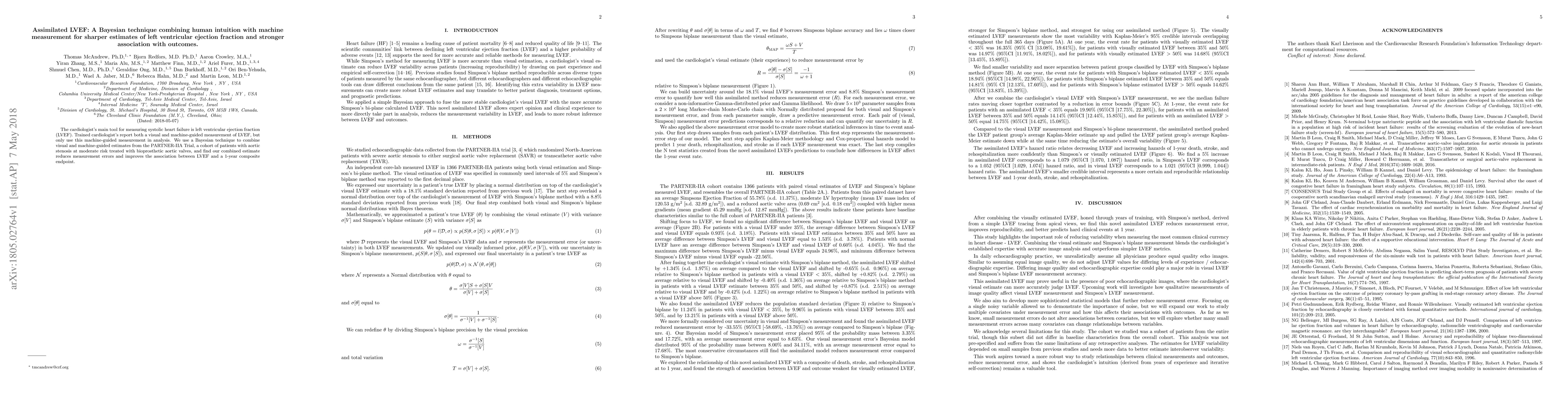 The cardiologist's main tool for measuring systolic heart failure is left ventricular ejection fraction (LVEF). Trained cardiologist's report both a visual and machine-guided measurement of LVEF, but only use this machine-guided measurement in analysis. We use a Bayesian technique to combine visual and machine-guided estimates from the PARTNER-IIA Trial, a cohort of patients with aortic stenosis at moderate risk treated with bioprosthetic aortic valves, and find our combined estimate reduces measurement errors and improves the association between LVEF and a 1-year composite endpoint.
