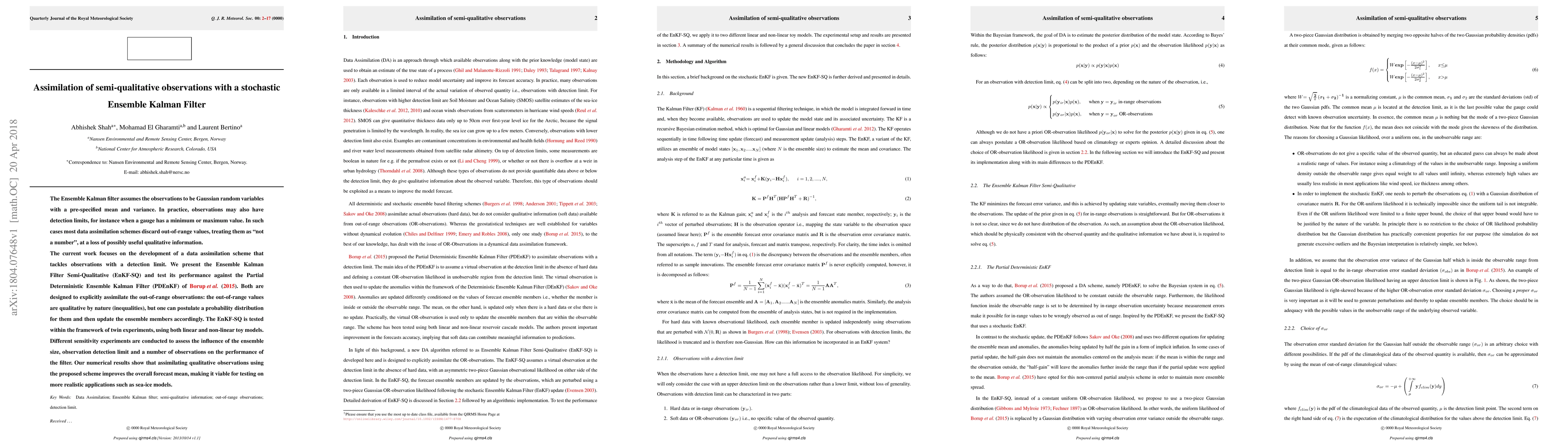 This paper develops the Ensemble Kalman Filter Semi-Qualitative (EnKF-SQ) to assimilate semi-qualitative observations with detection limits, contrasting it with the Partial Deterministic Ensemble Kalman Filter (PDEnKF). The EnKF-SQ improves forecast accuracy by incorporating out-of-range observations as qualitative inequalities, demonstrated through twin experiments on linear and non-linear models.