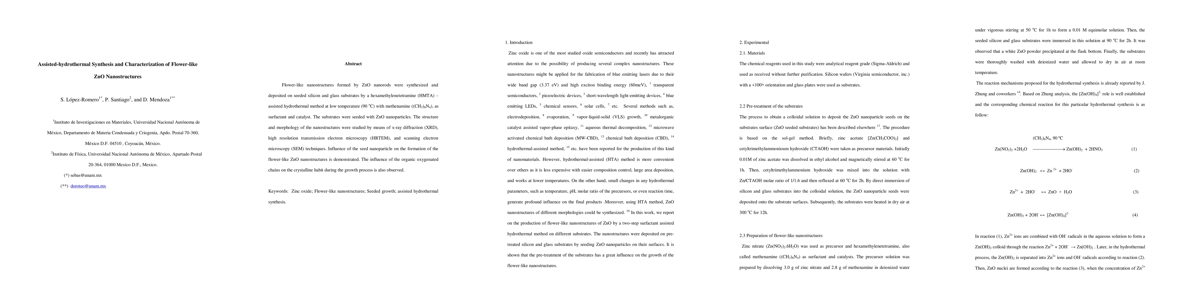 This paper details the assisted-hydrothermal synthesis of flower-like ZnO nanostructures using hexamethylenetetramine and methenamine, with characterization via XRD, HRTEM, and SEM. The study highlights the role of ZnO seed nanoparticles and organic surfactants in shaping the nanostructures' morphology.
