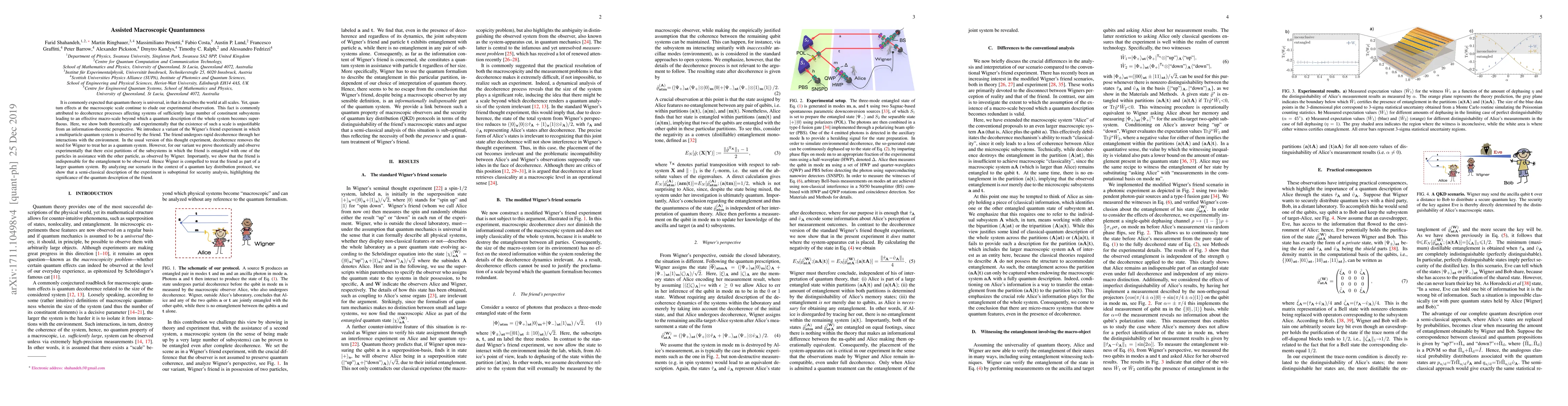It is commonly expected that quantum theory is universal, in that it describes the world at all scales. Yet, quantum effects at the macroscopic scale continue to elude our experimental observation. This fact is commonly attributed to decoherence processes affecting systems of sufficiently large number of constituent subsystems leading to an effective macro-scale beyond which a quantum description of the whole system becomes superfluous. Here, we show both theoretically and experimentally that the existence of such a scale is unjustifiable from an information-theoretic perspective. We introduce a variant of the Wigner's friend experiment in which a multiparticle quantum system is observed by the friend. The friend undergoes rapid decoherence through her interactions with the environment. In the usual version of this thought experiment, decoherence removes the need for Wigner to treat her as a quantum system. However, for our variant we prove theoretically and observe experimentally that there exist partitions of the subsystems in which the friend is entangled with one of the particles in assistance with the other particle, as observed by Wigner. Importantly, we show that the friend is indispensable for the entanglement to be observed. Hence Wigner is compelled to treat the friend as part of a larger quantum system. By analyzing our scenario in the context of a quantum key distribution protocol, we show that a semi-classical description of the experiment is suboptimal for security analysis, highlighting the significance of the quantum description of the friend.
