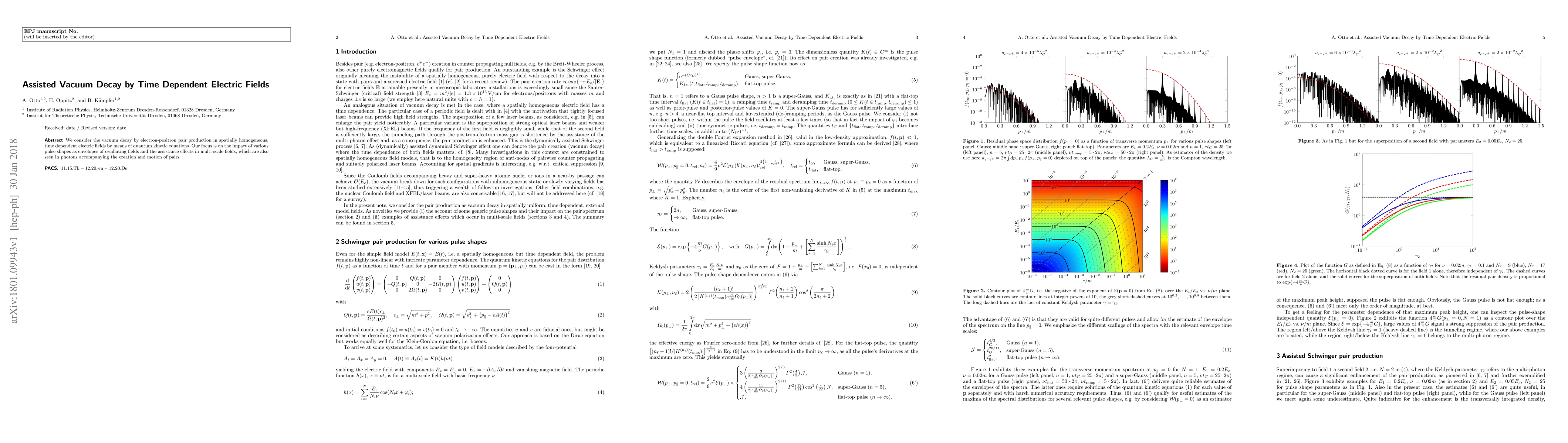 Researchers studied how time-dependent electric fields can help speed up vacuum decay by creating pairs of electrons and positrons. They found that certain pulse shapes in the electric field can enhance this process.