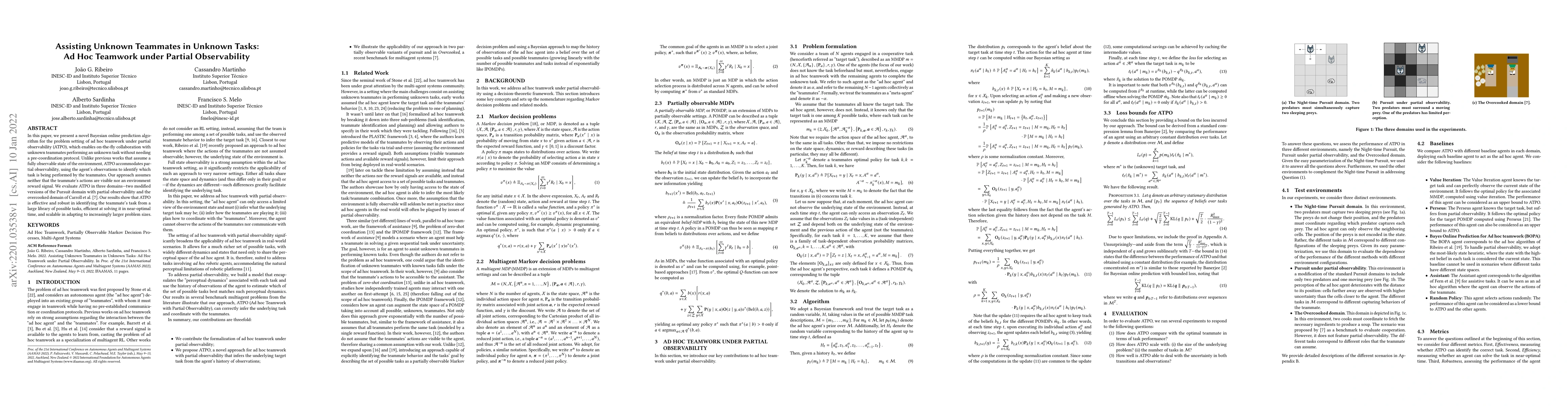 This paper introduces a Bayesian online prediction algorithm for ad hoc teamwork under partial observability, allowing collaboration with unknown teammates performing unknown tasks without prior coordination. The approach effectively identifies tasks and solves them efficiently, demonstrating robustness and scalability across various domains.
