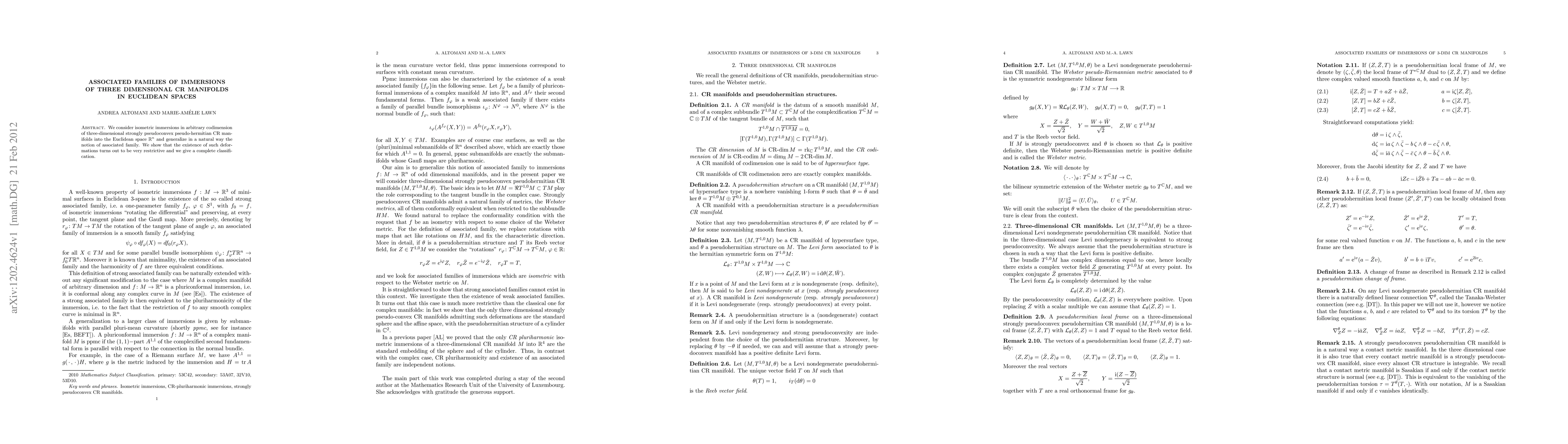 This paper explores isometric immersions of three-dimensional strongly pseudoconvex CR manifolds into Euclidean spaces, generalizing the concept of associated families. It concludes with a complete classification of the conditions under which such deformations can exist.