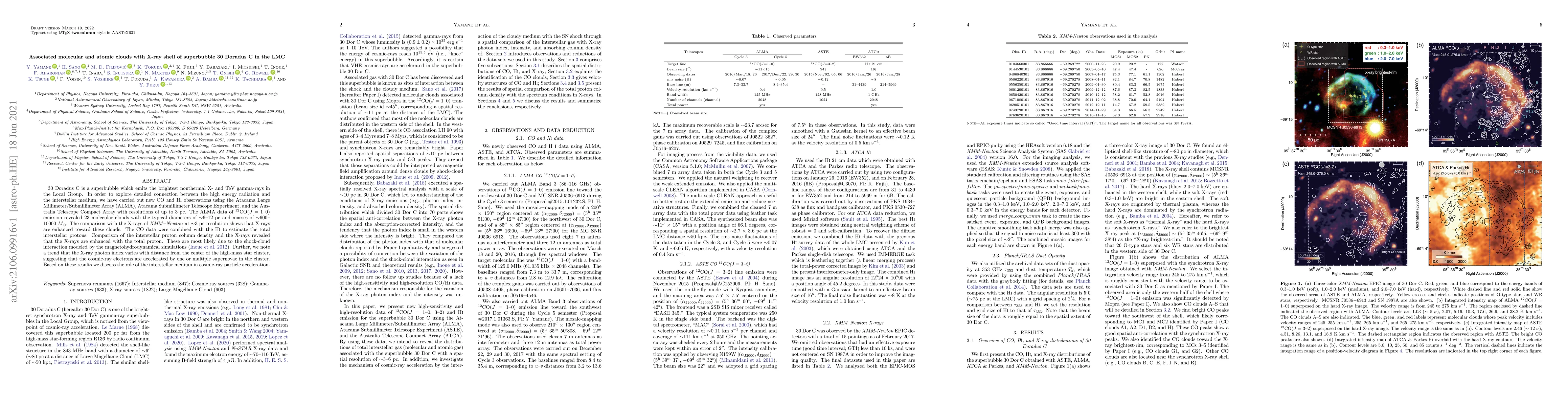 This study uses ALMA, ASTEP, and ATC observations to investigate the molecular and atomic clouds in the X-ray shell of the superbubble 30 Doradus C in the LMC. The findings show enhanced X-ray emission correlated with molecular clouds and interstellar protons, suggesting shock-cloud interactions and cosmic-ray particle acceleration by supernovae.