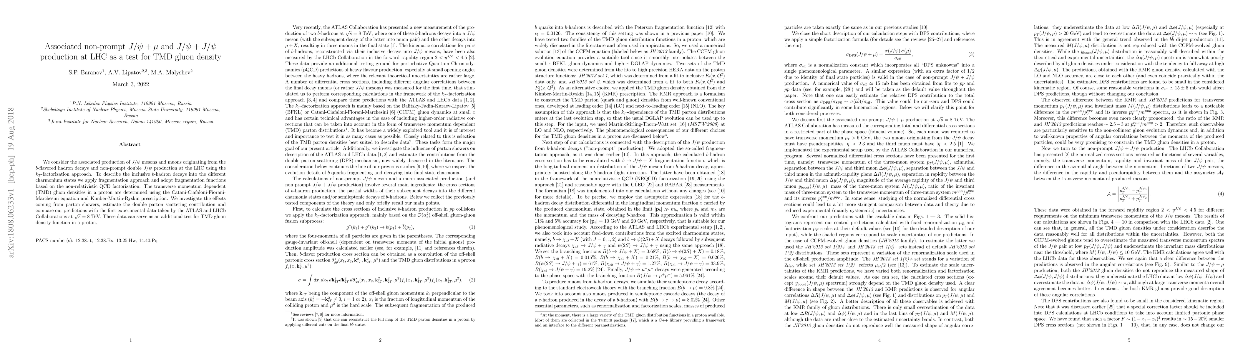 This paper investigates the associated production of $J/\psi$ mesons and muons, as well as non-prompt double $J/\psi$ production at the LHC using the $k_T$-factorization approach. The study determines the TMD gluon density in a proton and compares its predictions with experimental data from ATLAS and LHCb Collaborations to test this density.
