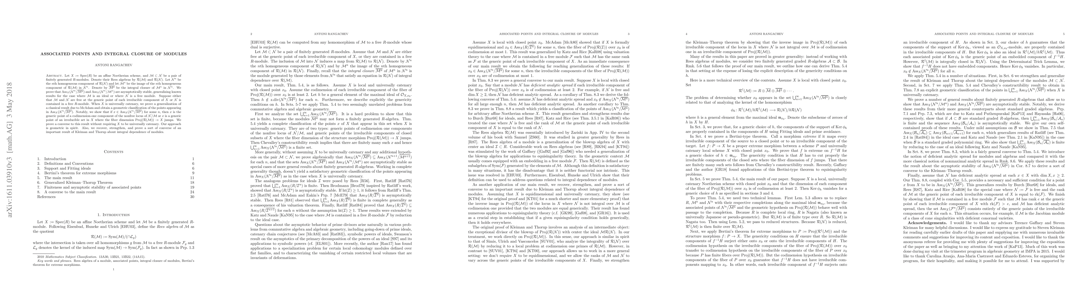 This research paper explores the asymptotic stability of associated points in the context of integral closures of modules over Noetherian rings. The authors prove that certain sets of associated points in the quotients of homogeneous components of Rees algebras of modules are stable. They generalize existing results for specific module cases and provide conditions under which a geometric classification of these points is possible, particularly when the scheme is universally catenary. The study also offers a converse to a significant result concerning integral dependence of modules, strengthening previous work by Kleiman and Thorup.