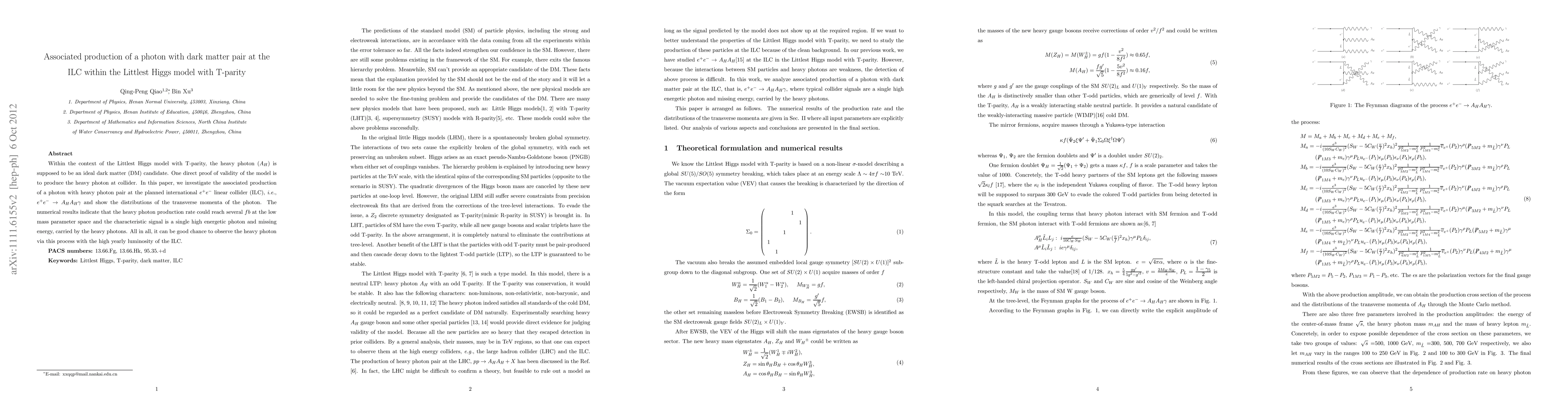 This paper explores the associated production of a photon with a pair of heavy photons ($A_{H}$) at the International Linear Collider (ILC) within the framework of the Littlest Higgs model with T-parity. The study shows that the production rate could reach several fb, indicating a promising chance to observe the heavy photon, characterized by a single high-energy photon and missing energy.