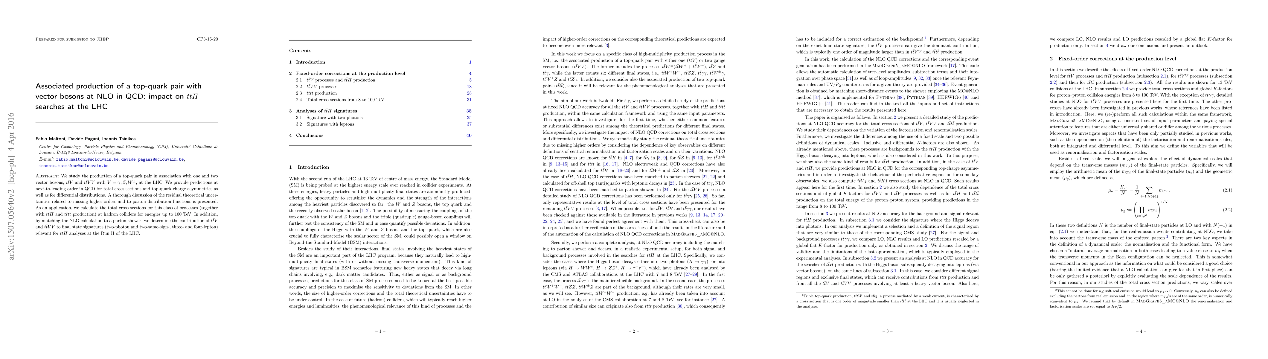 This paper provides next-to-leading order QCD predictions for the production of top-quark pairs with vector bosons at the LHC, analyzing their impact on $t \bar{t} H$ searches and assessing theoretical uncertainties. It also evaluates the contribution of these processes to final state signatures relevant for $t \bar{t} H$ analyses at the LHC's Run II.