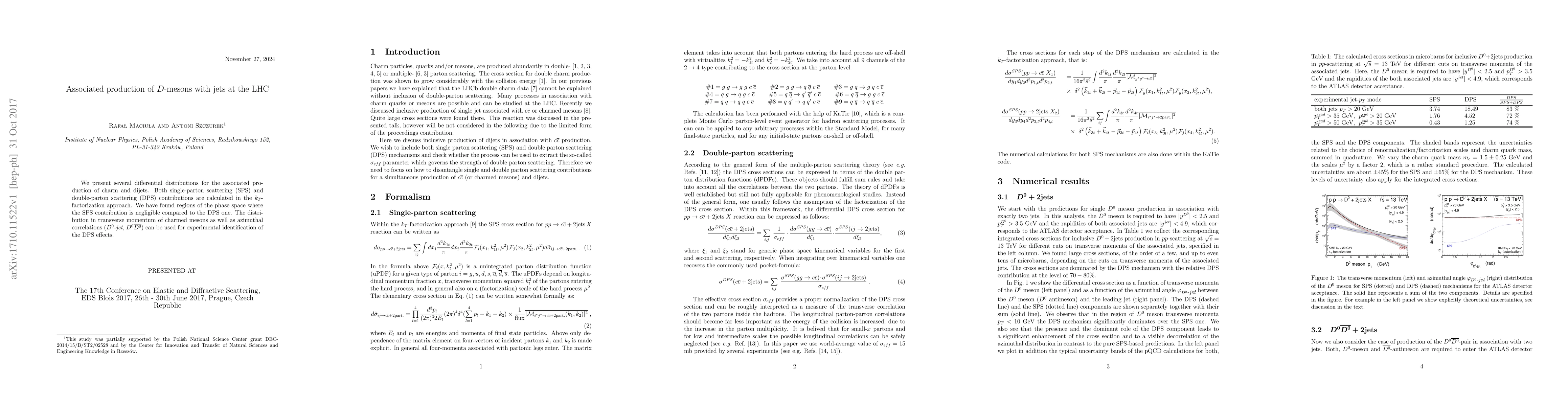 We present several differential distributions for the associated production of charm and dijets. Both single-parton scattering (SPS) and double-parton scattering (DPS) contributions are calculated in the $k_T$-factorization approach. We have found regions of the phase space where the SPS contribution is negligible compared to the DPS one. The distribution in transverse momentum of charmed mesons as well as azimuthal correlations ($D^0\mathrm{\textit{-jet}}$, $D^0 \overline{D^0}$) can be used for experimental identification of the DPS effects.