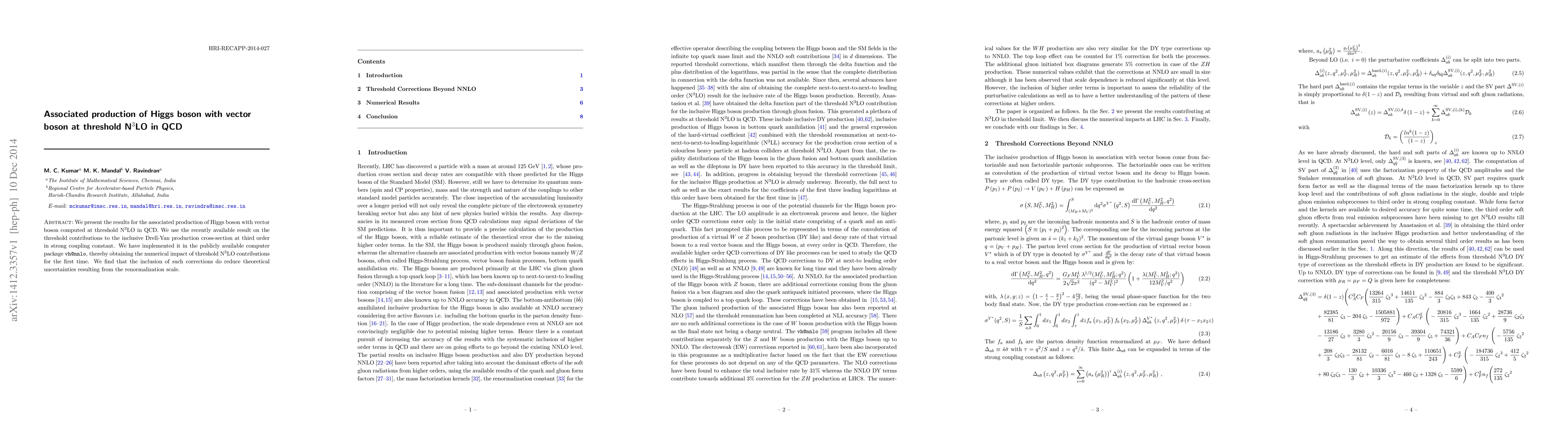 This paper reports the first computation of the associated production of a Higgs boson with a vector boson at threshold, calculated at N$^3$LO in QCD. The study utilizes recent results for third-order strong coupling contributions to inclusive Drell-Yan production, implemented in the vh@nnlo package, revealing significant reductions in theoretical uncertainties from renormalization scale variations.