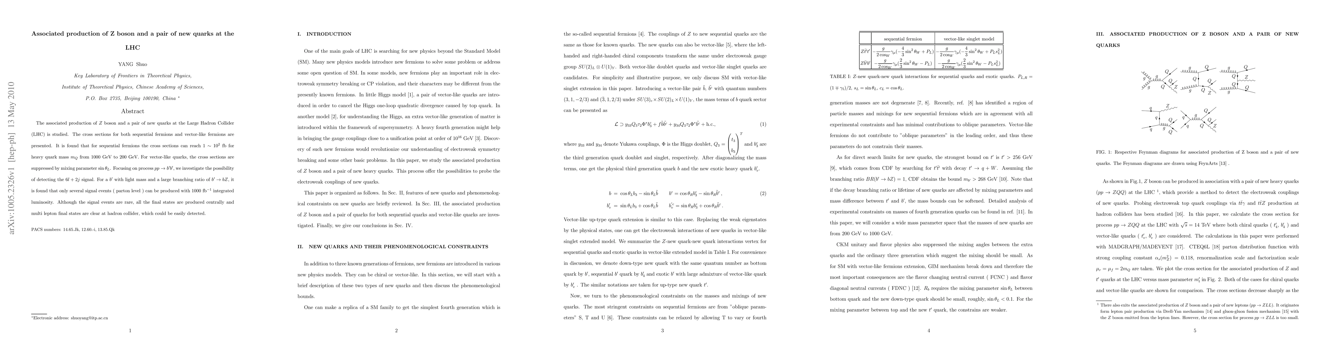 This paper studies the production of a $Z$ boson alongside a pair of new quarks at the LHC, comparing sequential and vector-like fermions. It finds significant cross sections for sequential fermions, while vector-like fermions' cross sections are suppressed by mixing. The study highlights the potential of detecting a $6l+2j$ signal from $b'b'$ production despite rare signal events.