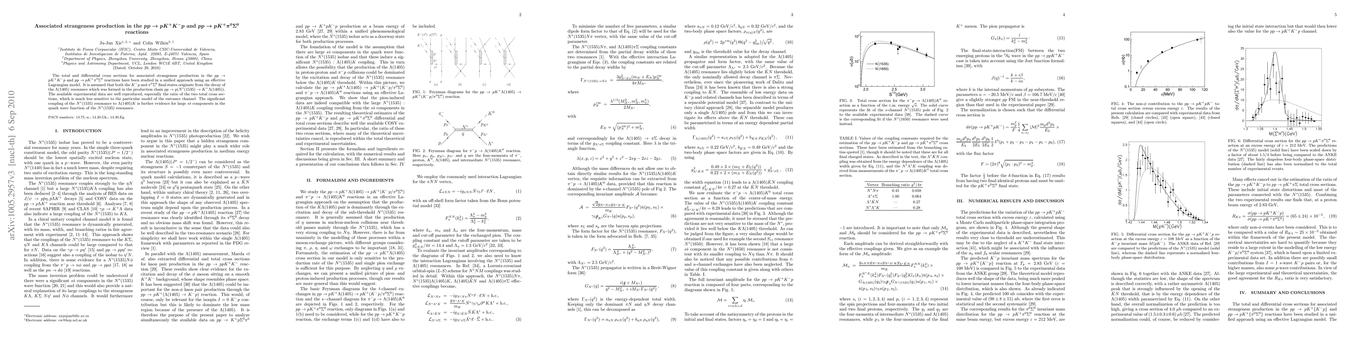 The total and differential cross sections for associated strangeness production in the $pp \to pK^+K^-p$ and $pp \to pK^+\pi^0\Sigma^0$ reactions have been studied in a unified approach using an effective Lagrangian model. It is assumed that both the $K^-p$ and $\pi^0\Sigma^0$ final states originate from the decay of the $\Lambda(1405)$ resonance which was formed in the production chain $pp\to p(N^*(1535)\to K^+\Lambda(1405))$. The available experimental data are well reproduced, especially the ratio of the two total cross sections, which is much less sensitive to the particular model of the entrance channel. The significant coupling of the $N^*(1535)$ resonance to $\Lambda(1405) K$ is further evidence for large $s \bar{s}$ components in the quark wave function of the $N^*(1535)$ resonance.