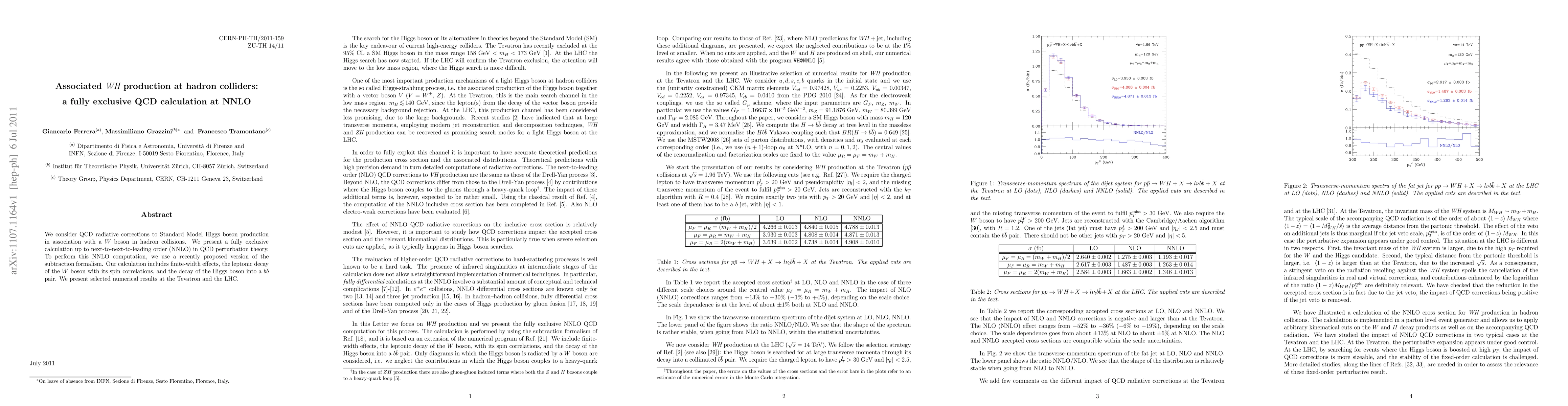 This paper presents a fully exclusive QCD calculation at next-to-next-to-leading order (NNLO) for the production of a Higgs boson in association with a W boson at hadron colliders, incorporating finite-width effects and detailed decay processes. Numerical results are provided for both the Tevatron and the LHC.
