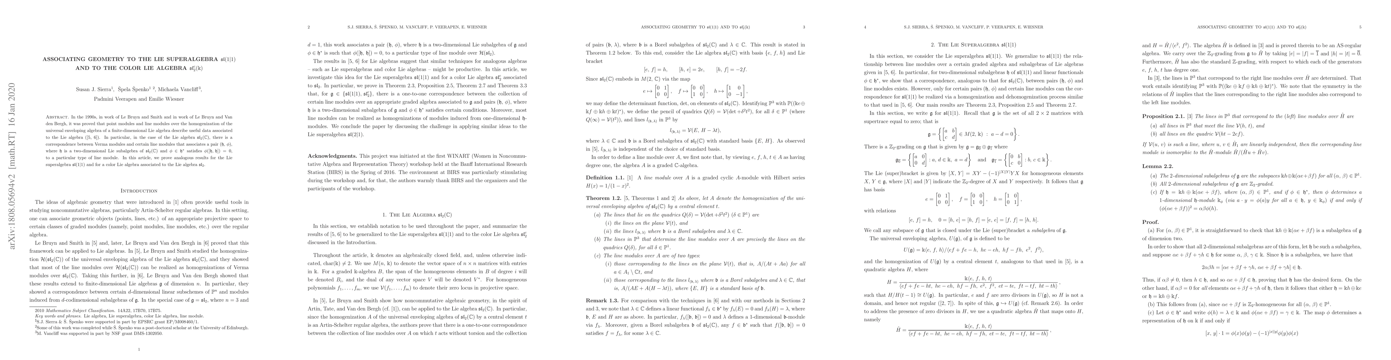 In the 1990s, in work of Le Bruyn and Smith and in work of Le Bruyn and Van den Bergh, it was proved that point modules and line modules over the homogenization of the universal enveloping algebra of a finite-dimensional Lie algebra describe useful data associated to the Lie algebra. In particular, in the case of the Lie algebra $\mathfrak{sl}_2(\mathbb{C})$, there is a correspondence between Verma modules and certain line modules that associates a pair $(\mathfrak{h},\,\phi)$, where $\mathfrak{h}$ is a two-dimensional Lie subalgebra of $\mathfrak{sl}_2(\mathbb{C})$ and $\phi \in \mathfrak{h}^*$ satisfies $\phi([\mathfrak{h}, \, \mathfrak{h}]) = 0$, to a particular type of line module. In this article, we prove analogous results for the Lie superalgebra $\mathfrak{sl}(1|1)$ and for a color Lie algebra associated to the Lie algebra $\mathfrak{sl}_2$.